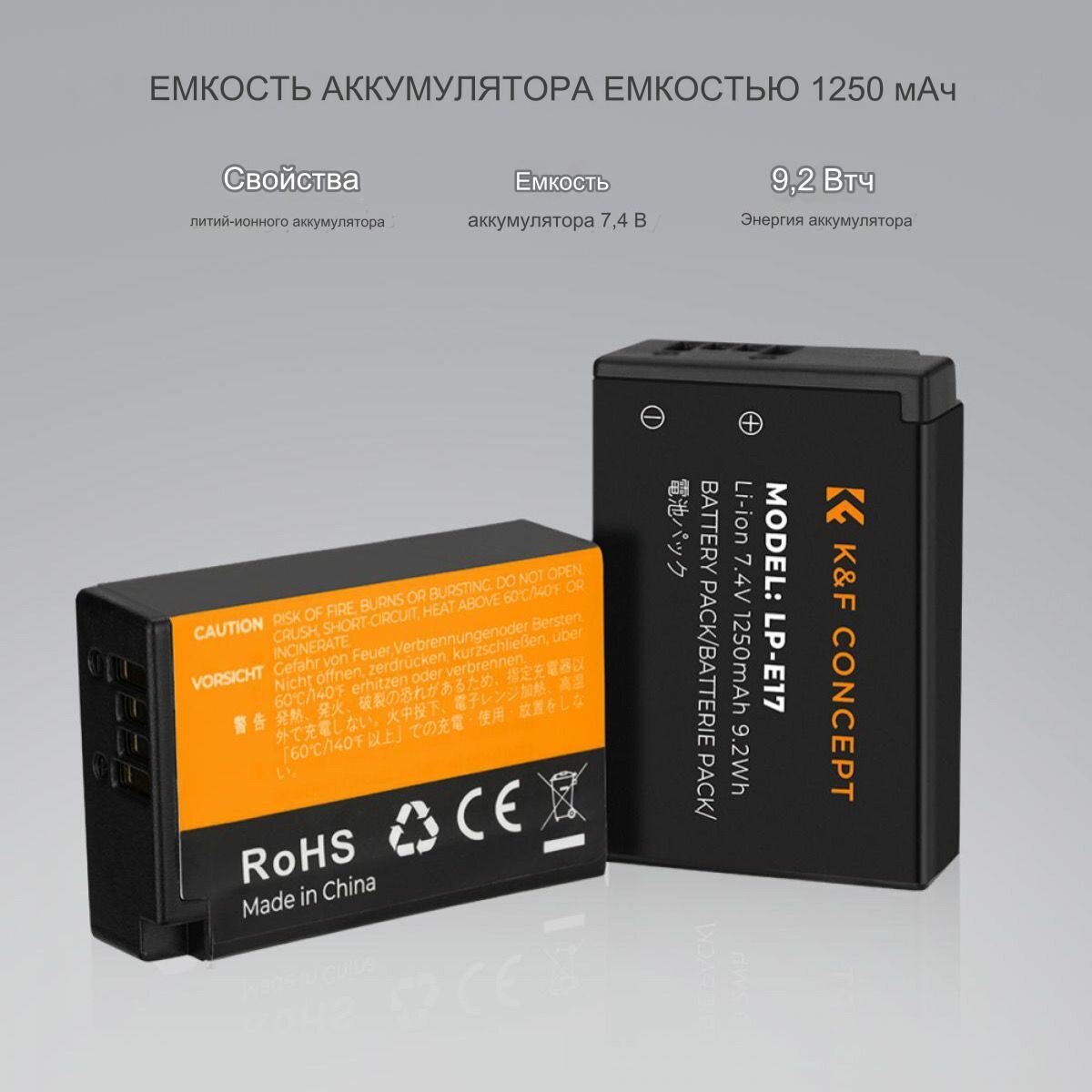 Зарядное устройство и два аккумулятора LP-E17 1250 мАч для Canon (KF28.0014) информация: