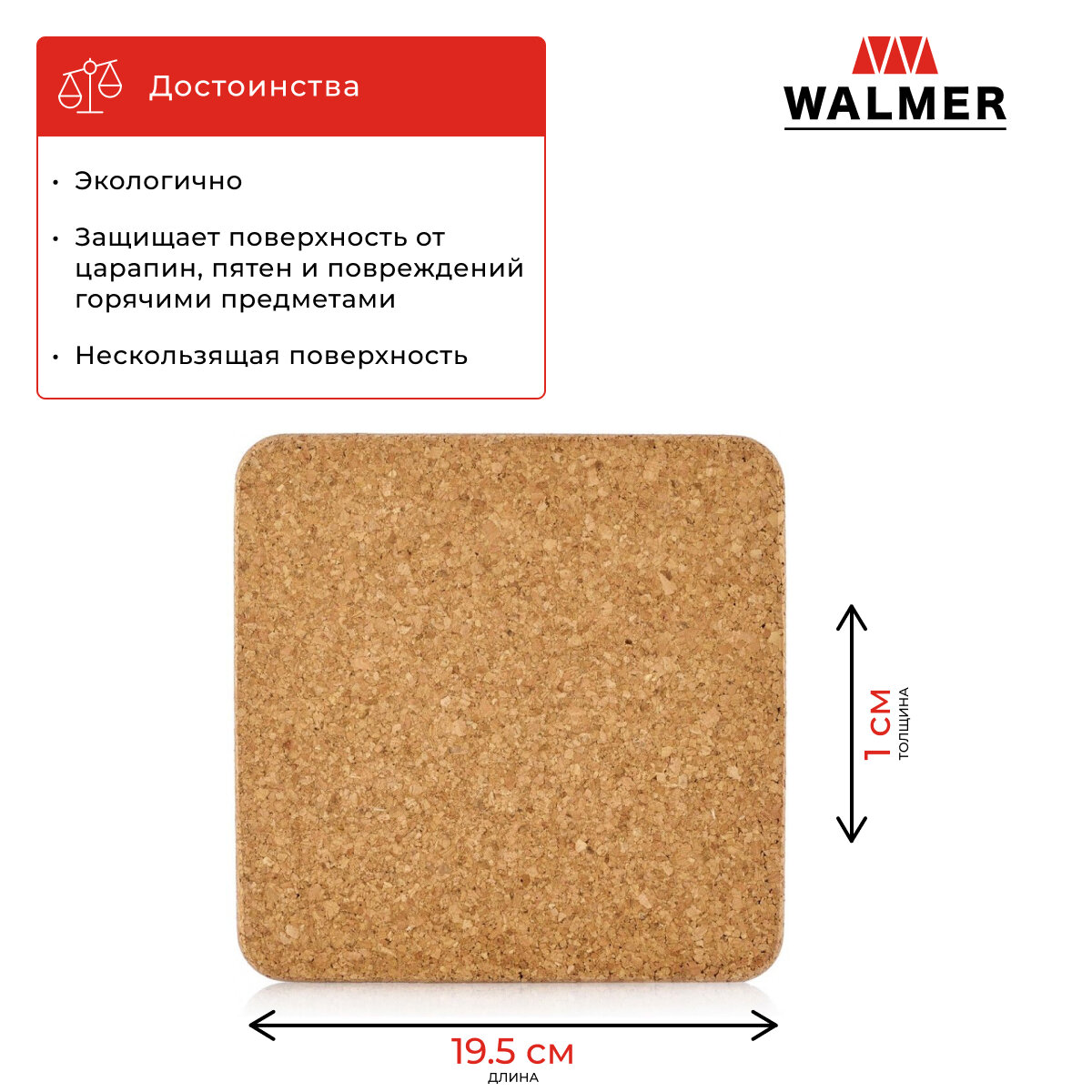 | Комплектация | Набор подставок под горячее WALMER Kronos 6шт 9,5х9,5см квадрат. пробка |