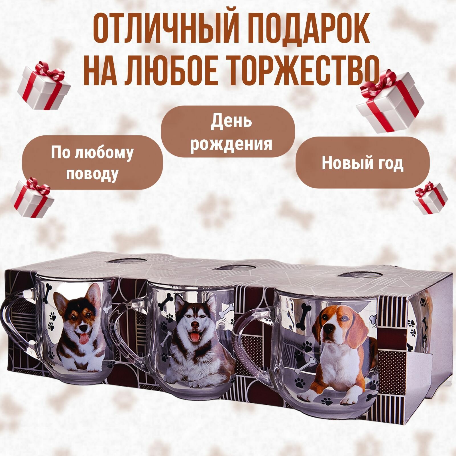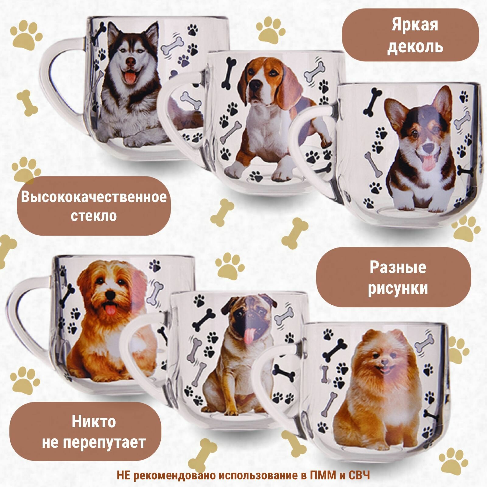10 цен на Набор из 6 стеклянных кружек. 300мл. Собачки