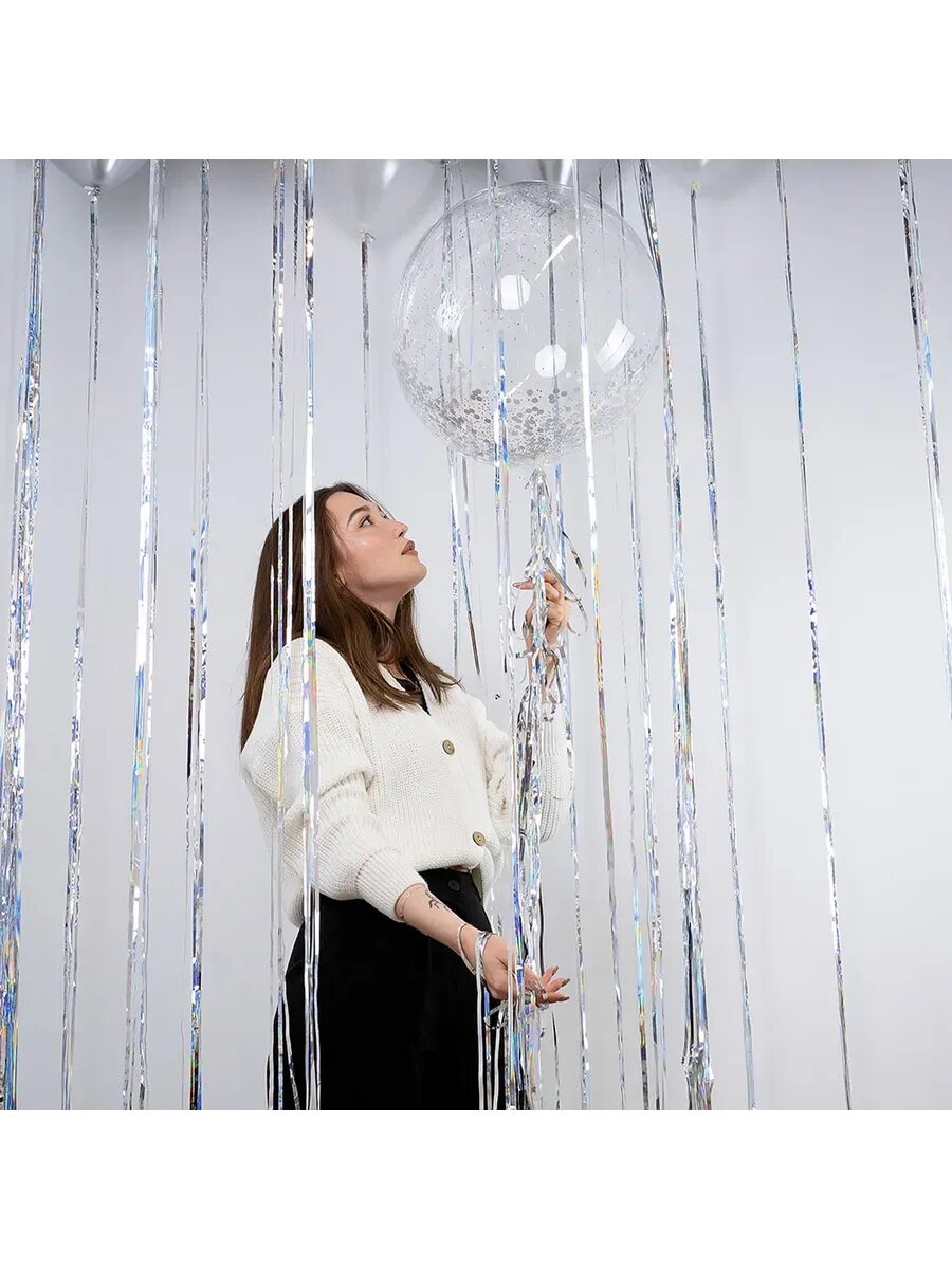 Занавес Дождик Хамелеон, Прозрачный, Голография, 100x200 см, 1 шт.