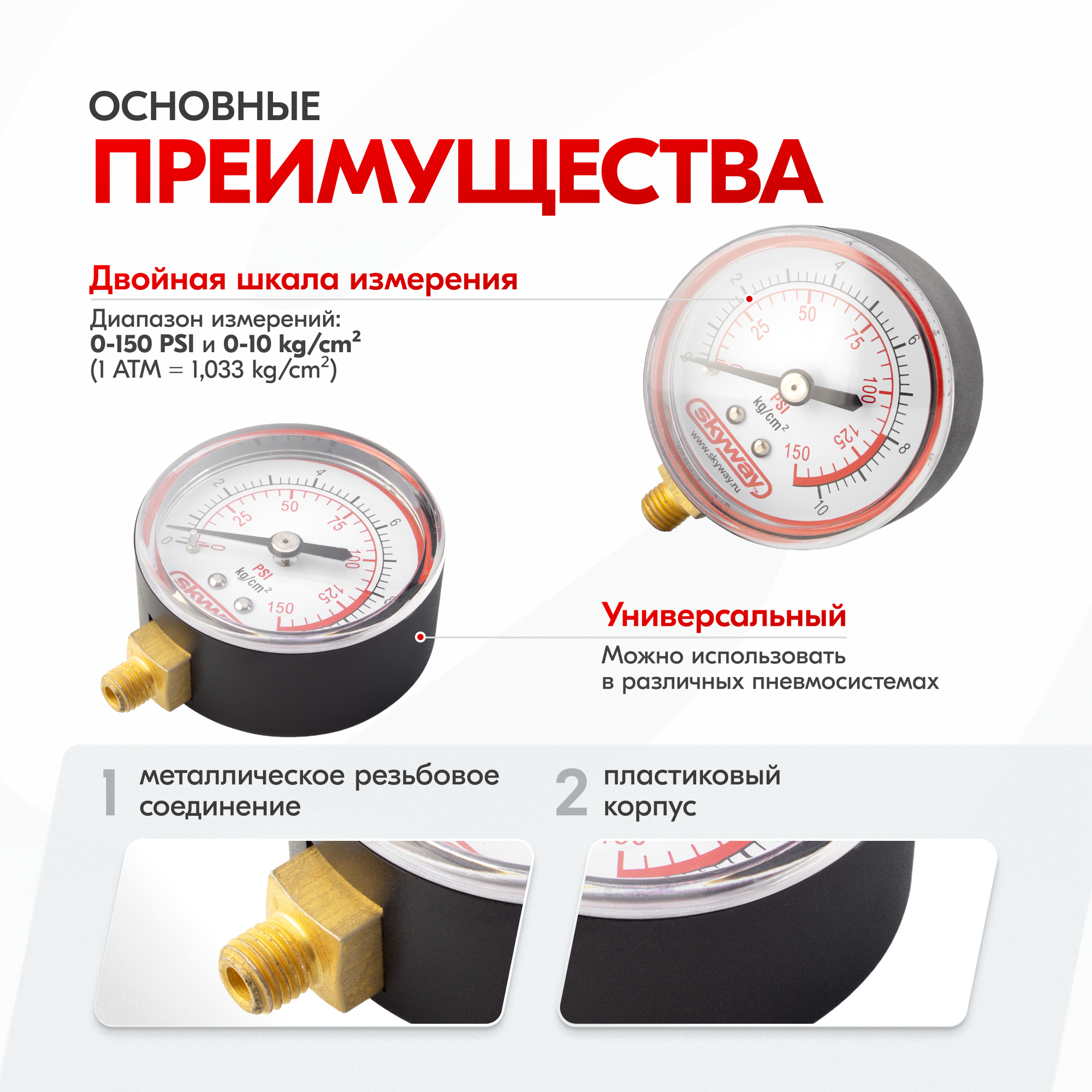 Отзывы на Манометр Skyway для компрессора торнадо в метал. корпусе 10,2 АТМ