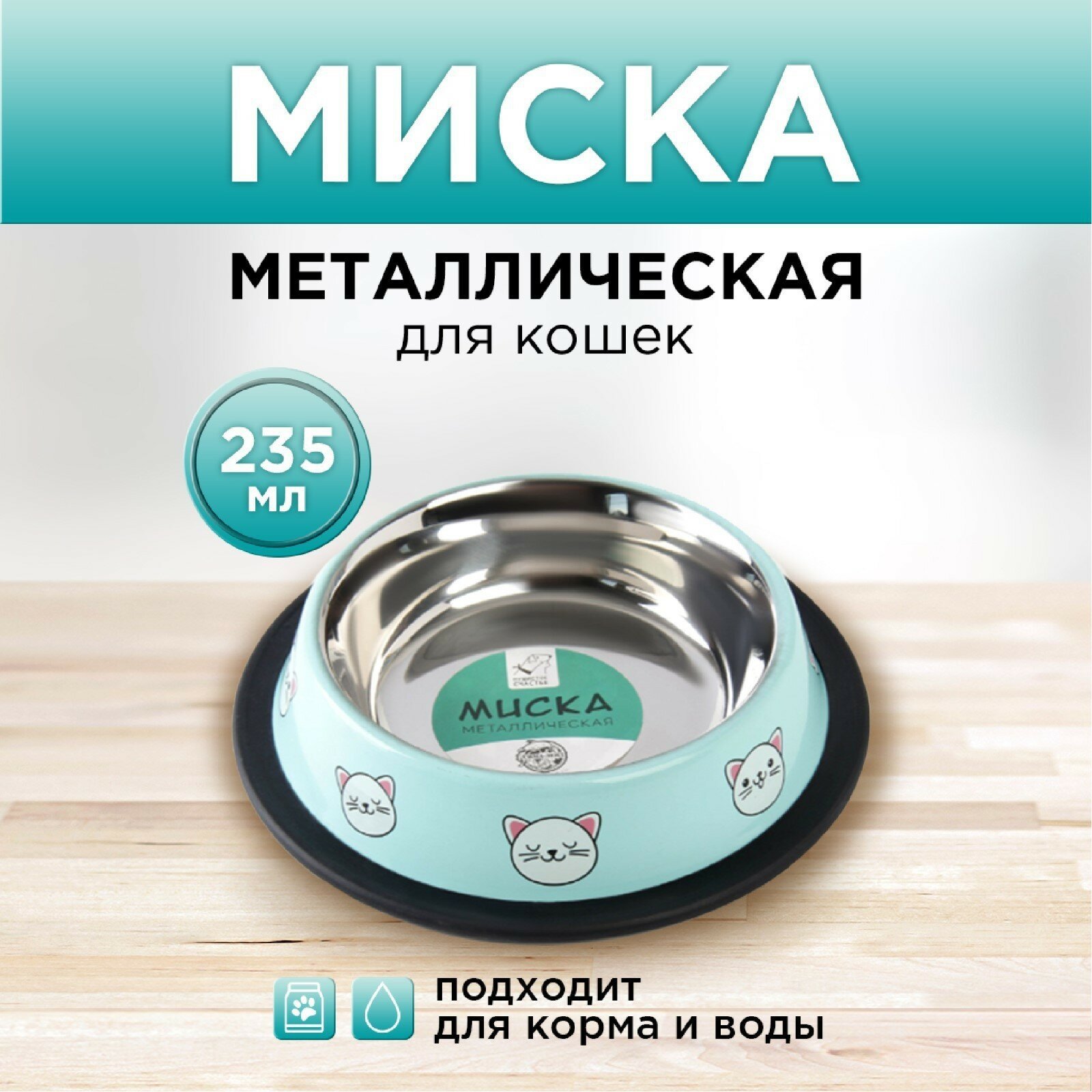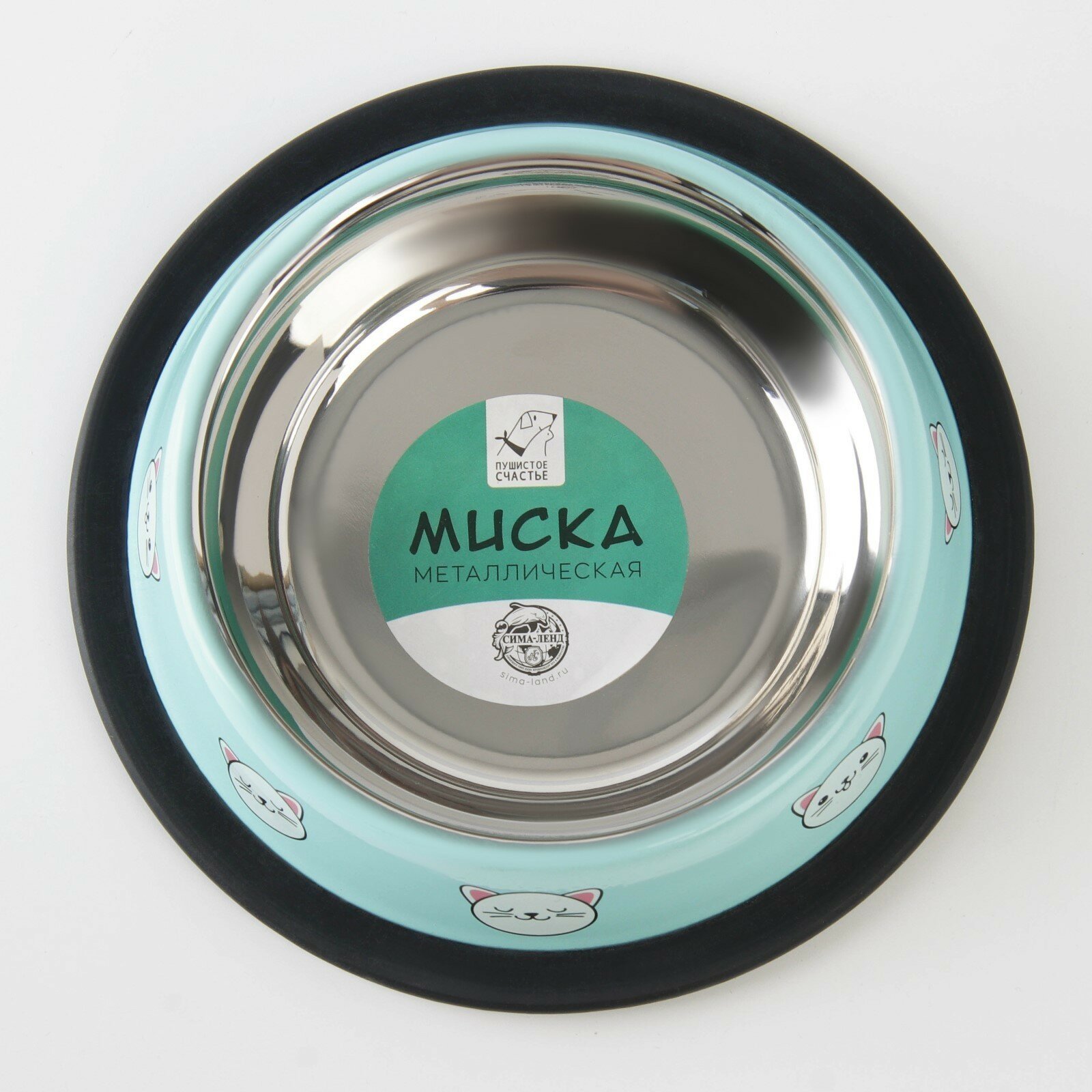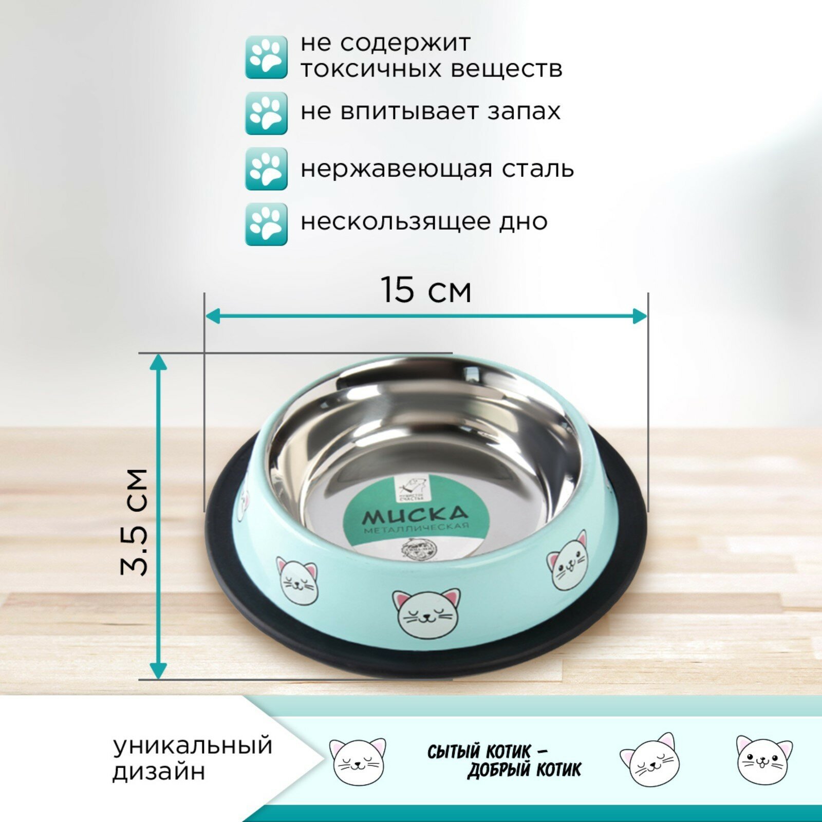 Миска металлическая для кошки с нескользящим основанием «Сытый котик - добрый котик», 235 мл, 15х3.5 см, 6256147 информация: