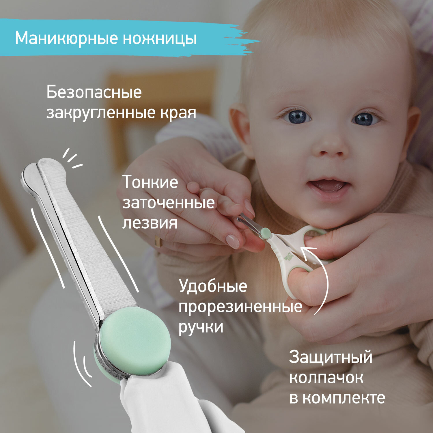 Ножницы детские безопасные, маникюрные, с чехлом, от 0 мес, розовый