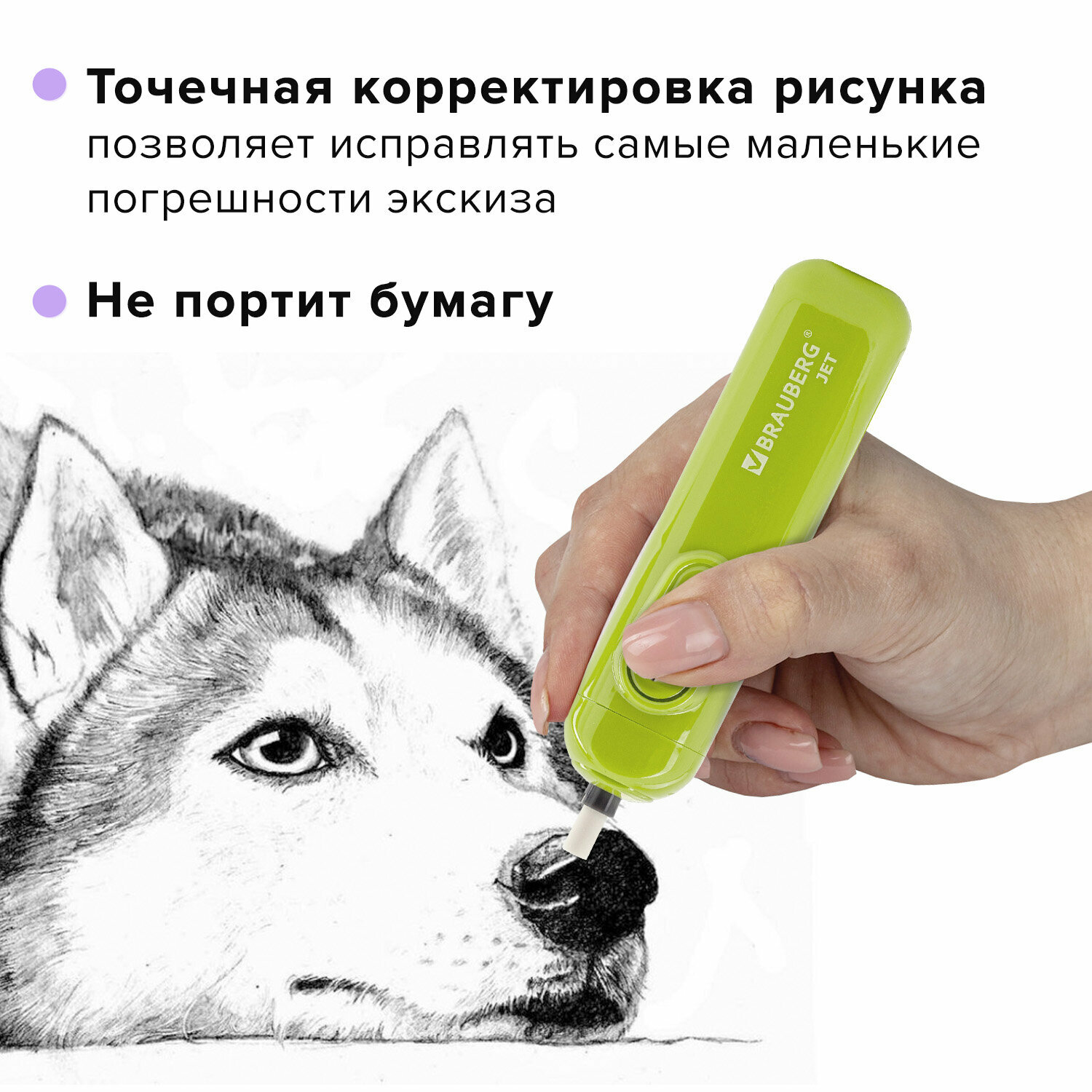 Отзывы на Ластик электрический BRAUBERG JET, питание от 2 батареек ААА, 8 сменных ластиков, салатовый, 229615