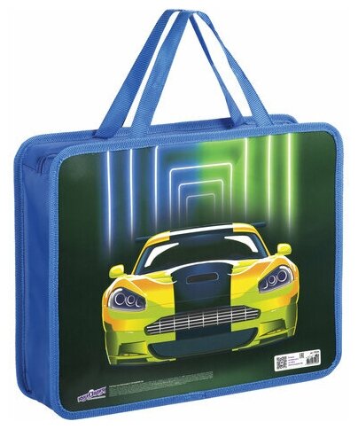 Папка с ручками А4 Юнландия "Neon car", пластик, на молнии (270118)