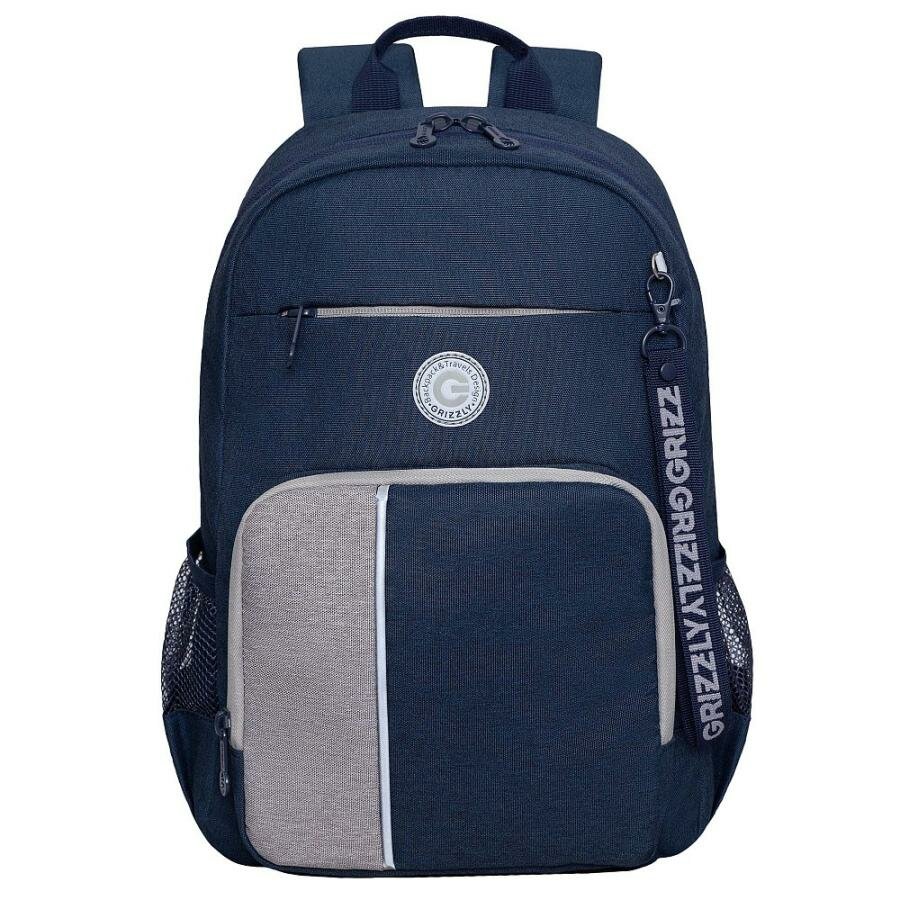 Рюкзак детский Grizzly, 22*28*10см, 1 отделение, 3 кармана, укрепленная спинка, синий (арт. 353541)