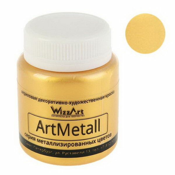 Краска акриловая ArtMetall, золото 583, 80мл, Wizzart