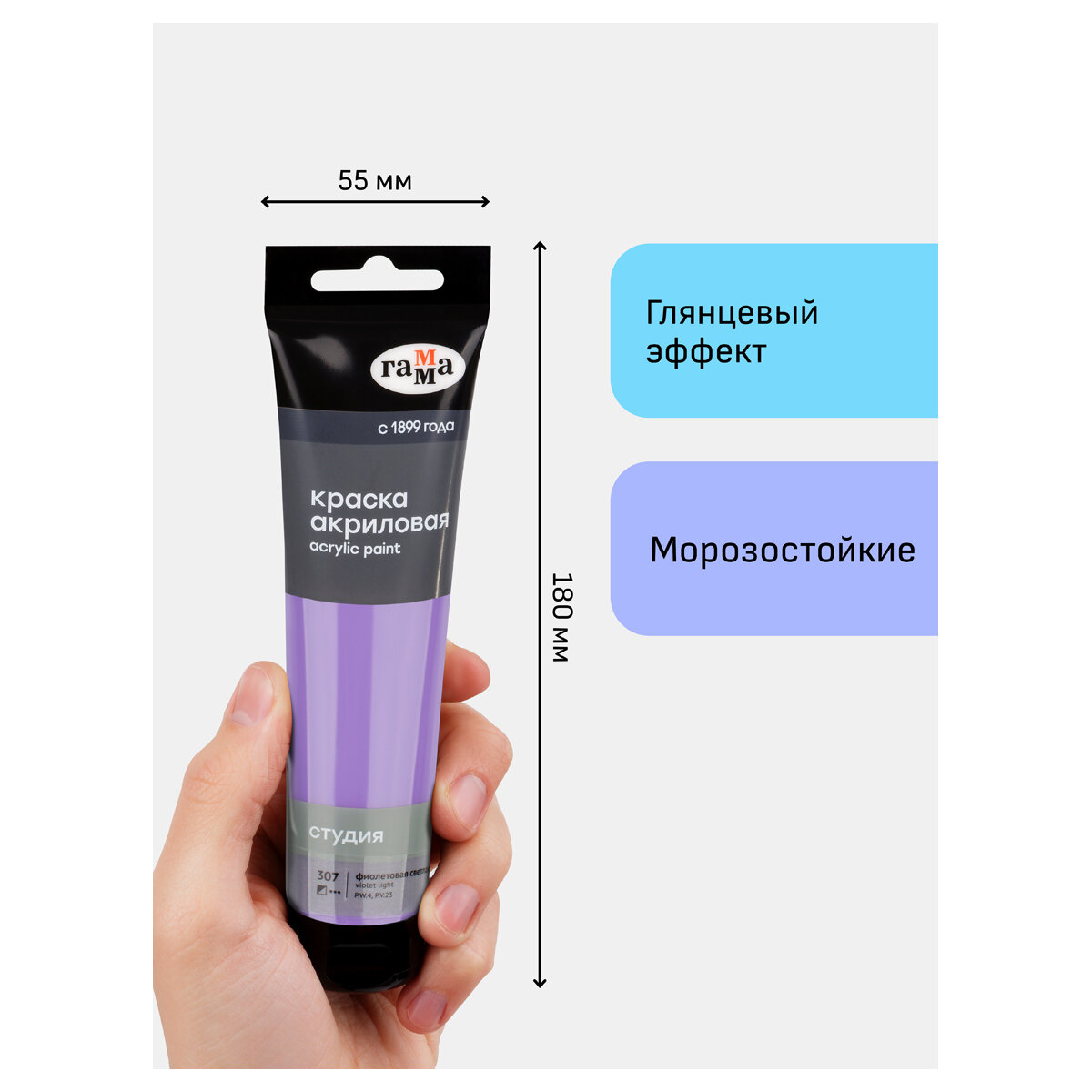 1 шт - Краска акриловая художественная Гамма "Студия", 110мл, пластиковая туба, фиолетовая светлая информация:
