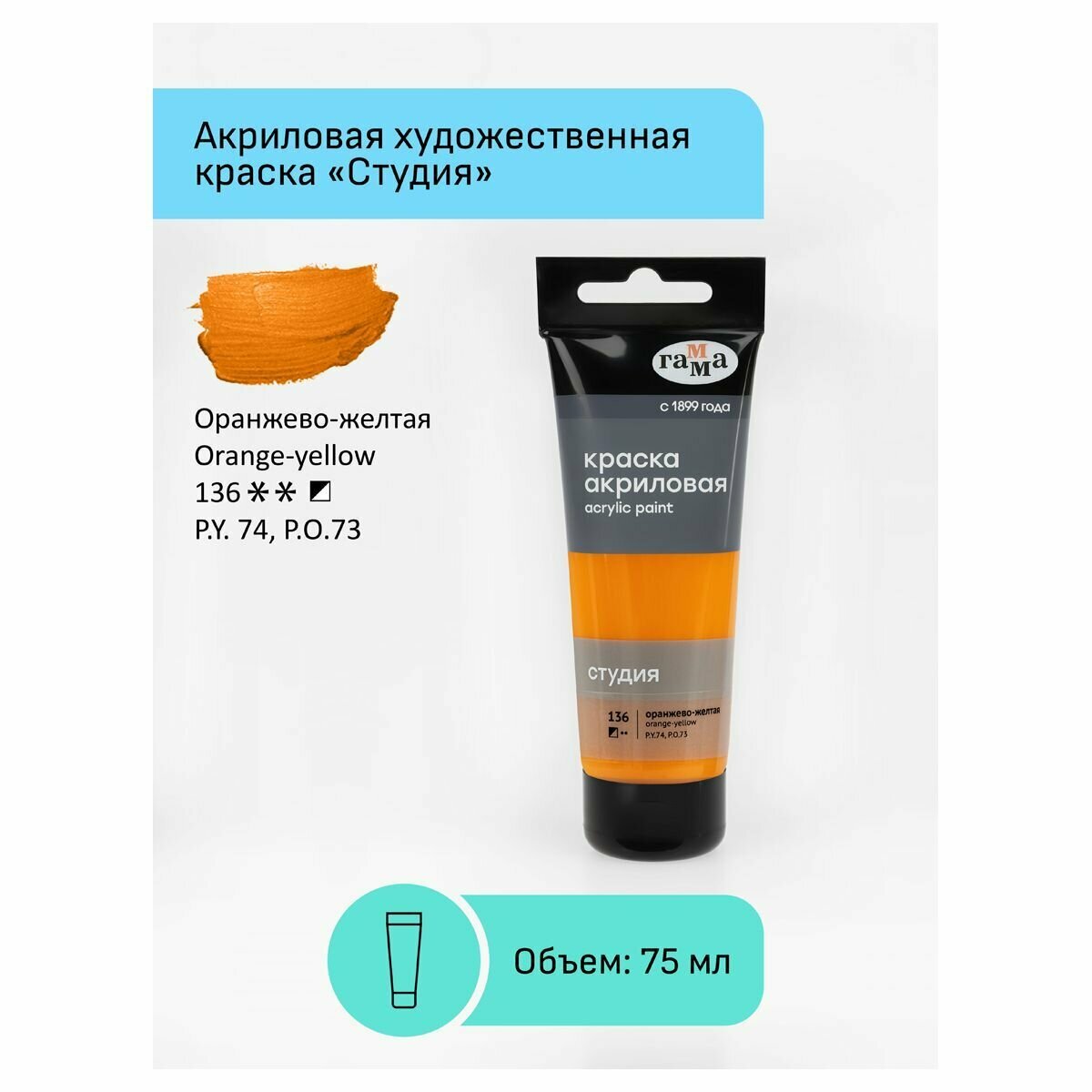 1 шт - Краска акриловая художественная Гамма "Студия", 75мл, пластиковая туба, оранжево-желтая информация: