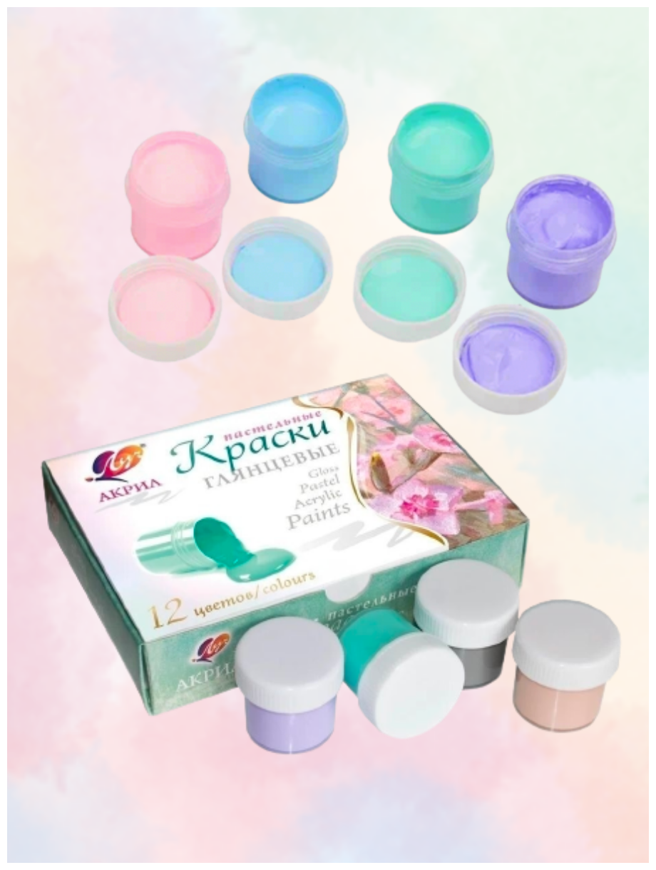 Акрил набор / Краски акриловые пастельные 12 цветов / Луч / Краски для рисования/пастельные глянцевые Акриловые 12 цветов/Пастельные