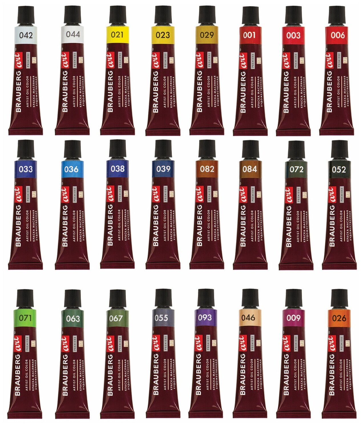 Краски масляные художественные BRAUBERG ART PREMIERE, 24 цв. по 12 мл, в тубах, 191457