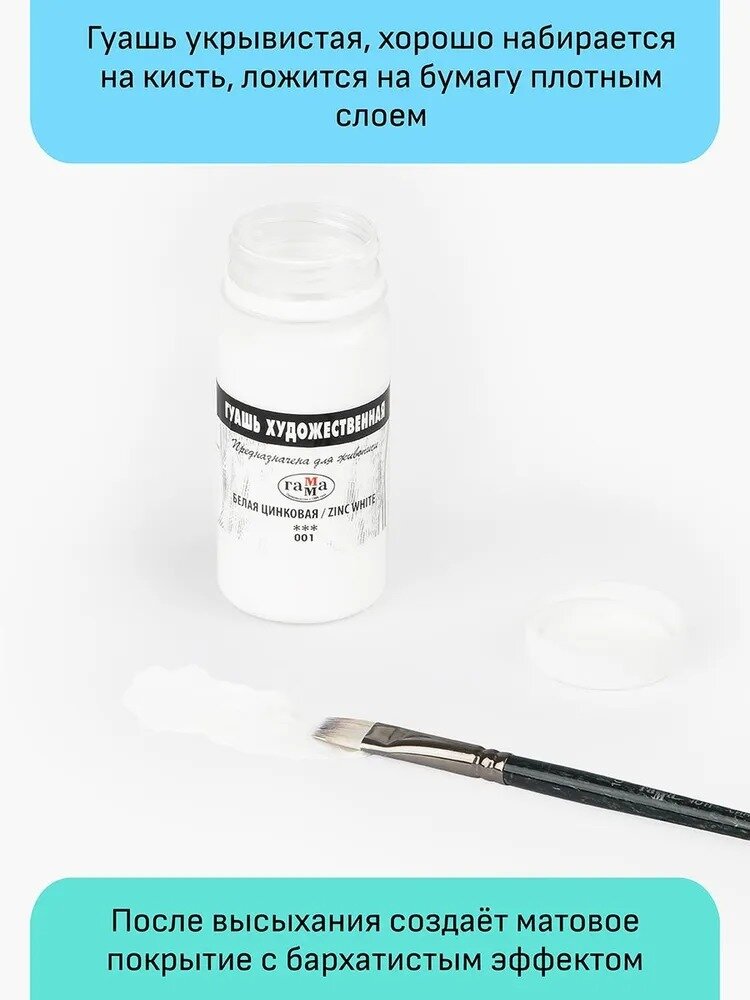 Гуашь художественная Гамма, белая цинковая, 110 мл., номер цвета 001 информация: