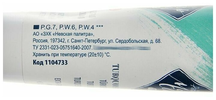 Краска масляная Невская палитра художественная 46 мл в тубе Мастер-Класс Турецкая голубая (1104527)