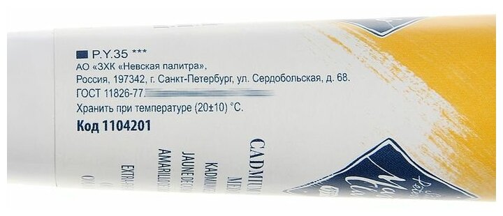 Краска масляная 46мл, Кадмий лимонный Мастер-класс Невская палитра 1104304
