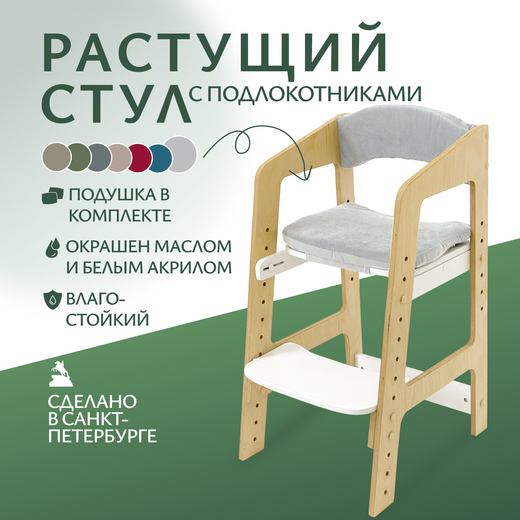 Растущий стульчик для детей Непоседа. Прозрачное масло. Светло-серые подушки. 5 135 ₽
