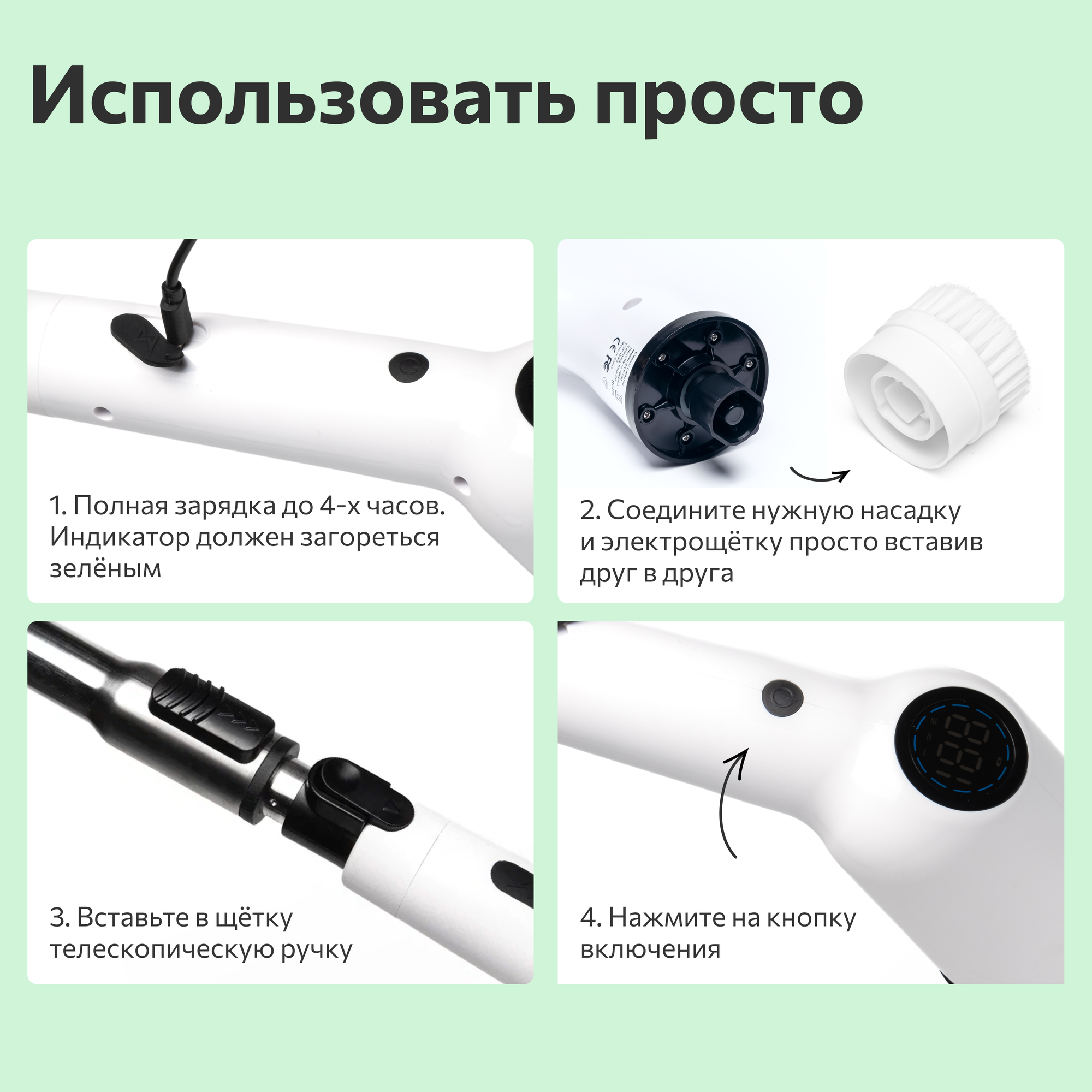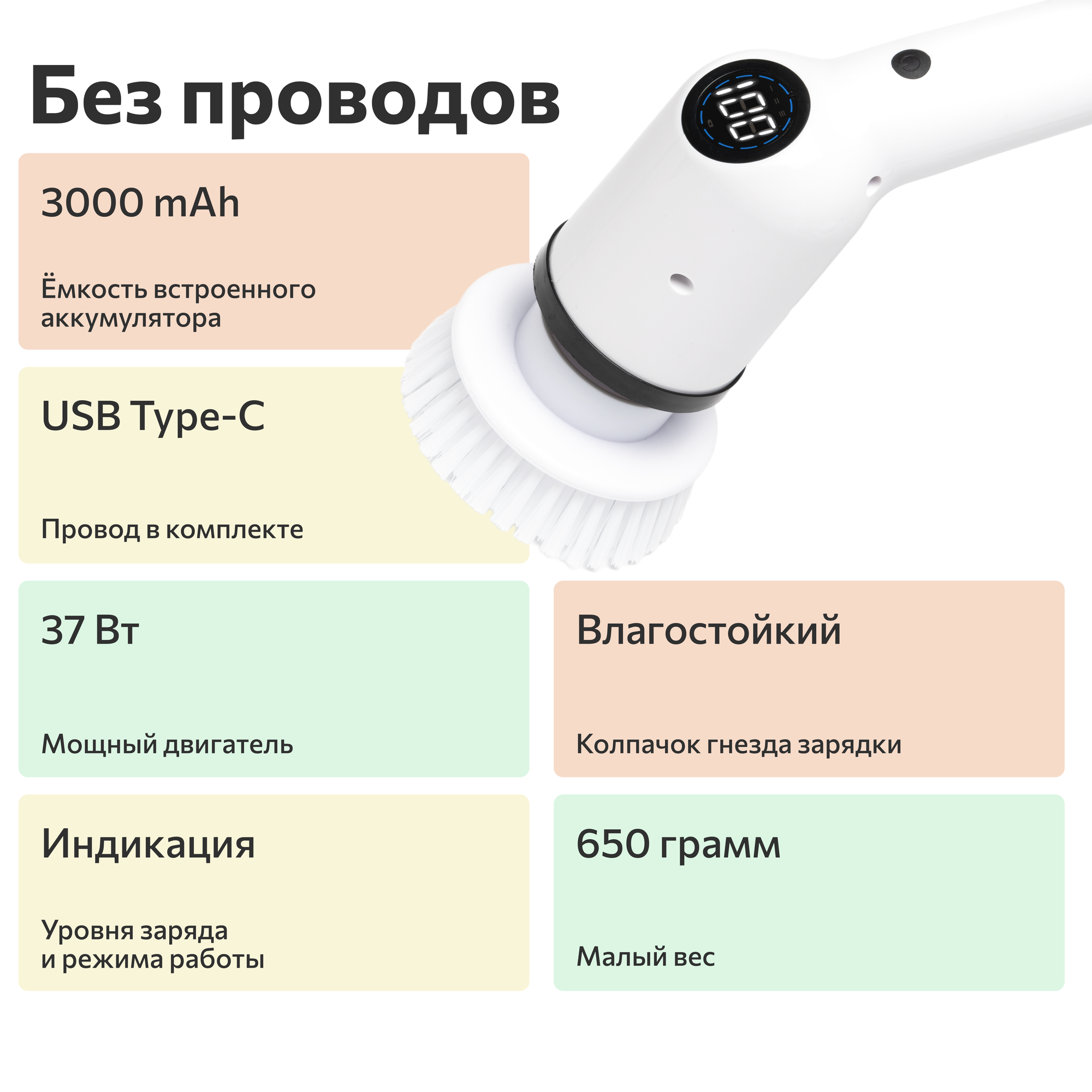 Электрическая щётка для уборки дома со сменными насадками, ручная беспроводная щетка для чистки ванной, в наборе с насадками 3 699 ₽