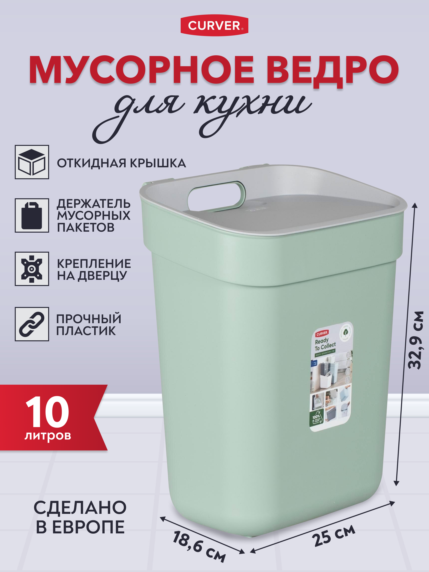 Мусорное ведро с крышкой для кухни, крепление на дверцу Curver Ready to collect 10 литров 1 375 ₽