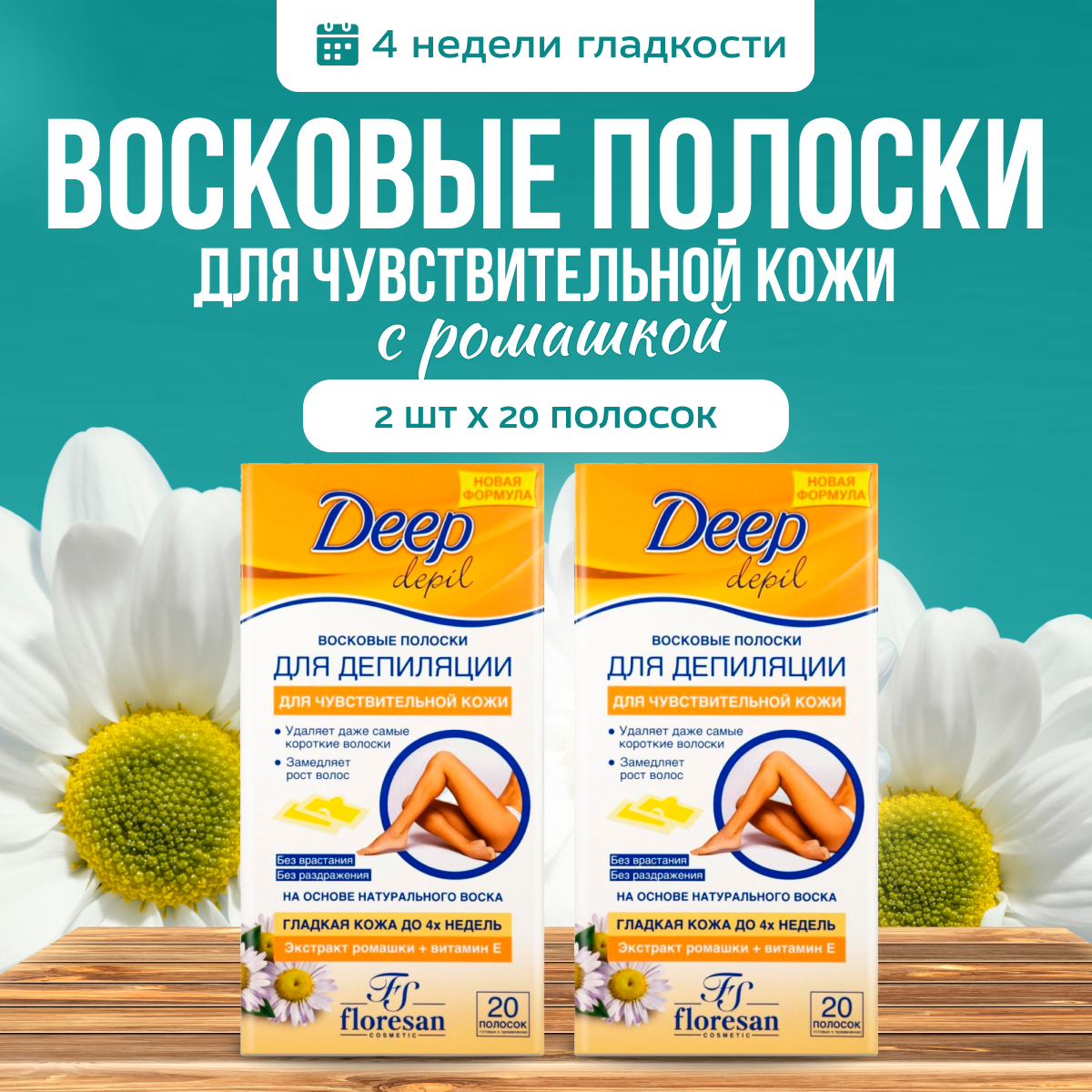 Восковые полоски Floresan для депиляции лица с ромашкой 2 уп по 20 шт информация: