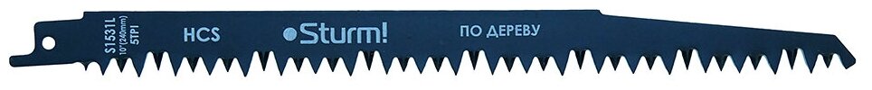 | Дополнительная информация | Полотно для сабельной пилы Sturm! 9019-03-S1531L изготовлено из высокоуглеродистой стали, что позволяет легко работать с грубой древесиной и обрезать стволы и ветки деревьев. Шлифованные и разведенные зубья |