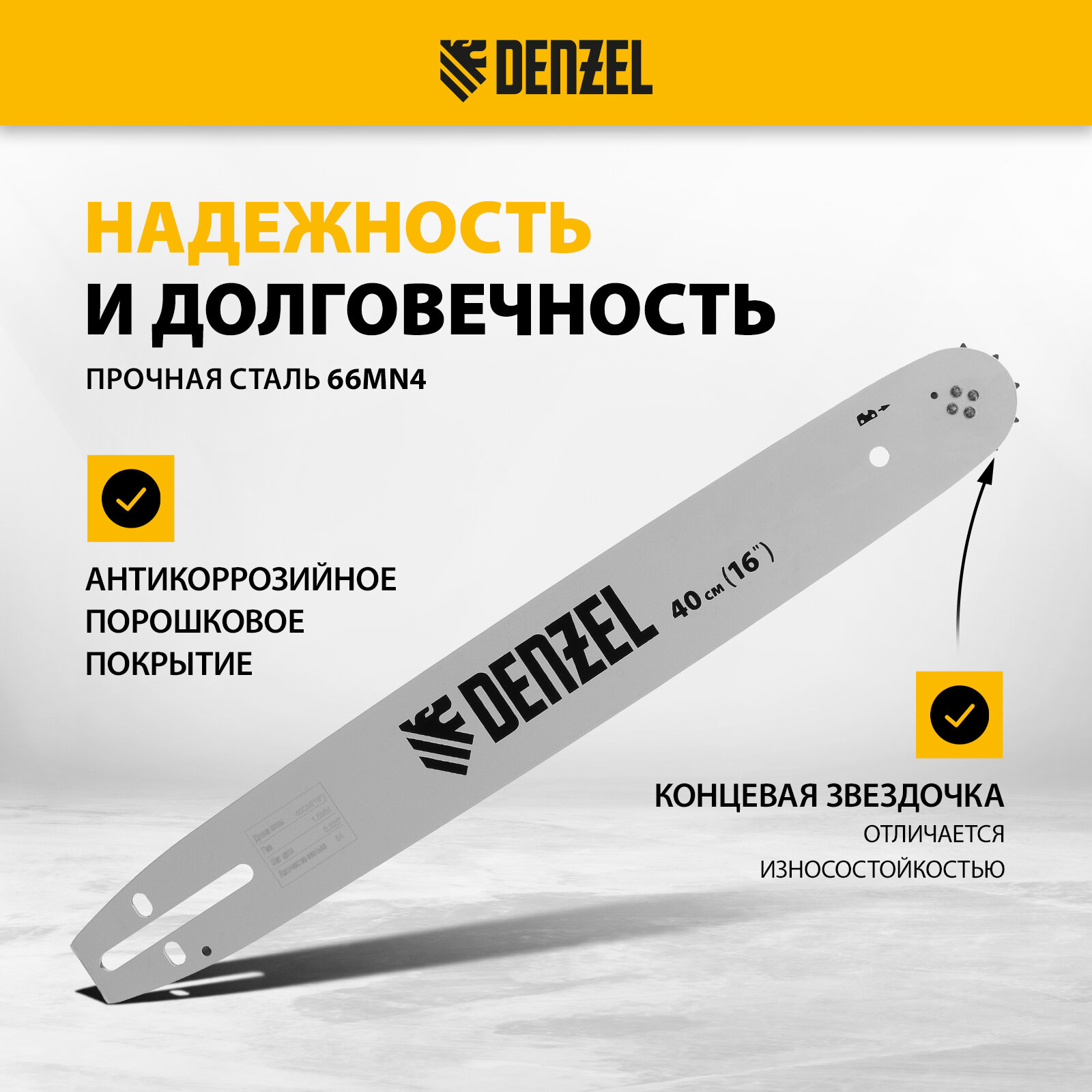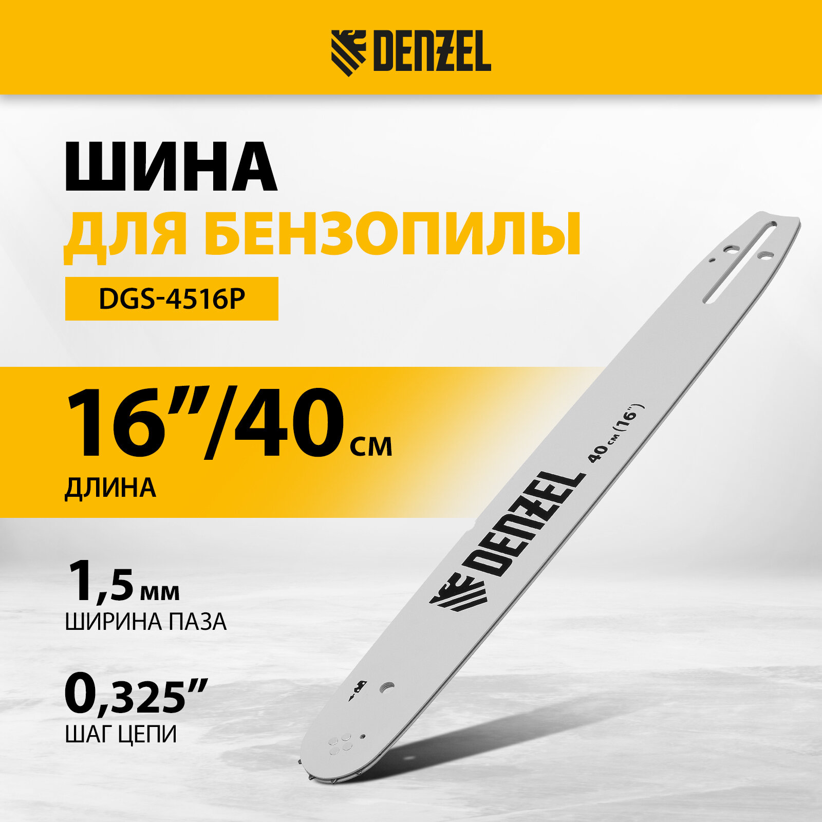 Шина для бензопилы Denzel DGS-4516P, длина 40 см (16"), шаг 0,325", паз 1,5 мм, 64 звена 59814 информация: