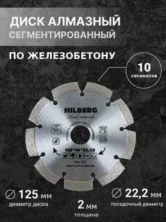 Диск алмазный армированному бетону 125*22,23 Hilberg Hard Materials Лазер HM102 информация: