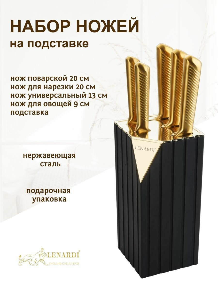 10 цен на Набор 6 предметов Ножи Lenardi на подставке, нержавеющая сталь