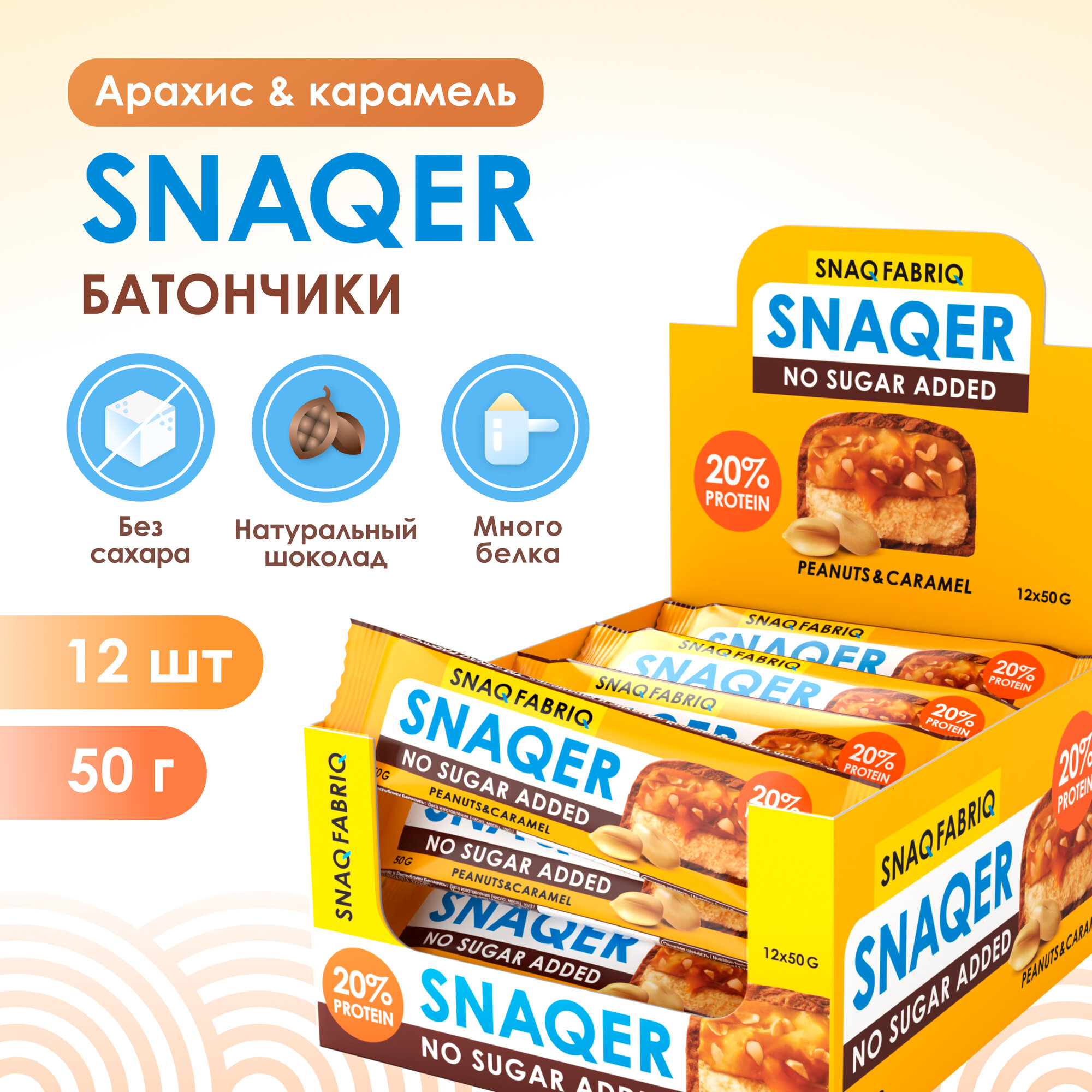 10 цен на Snaq Fabriq Протеиновые батончики без сахара SNAQER "Арахис и карамель", 12шт х 50г