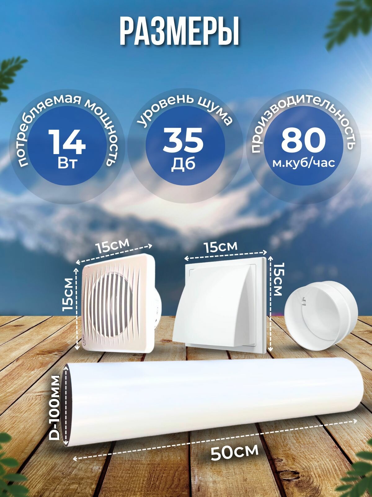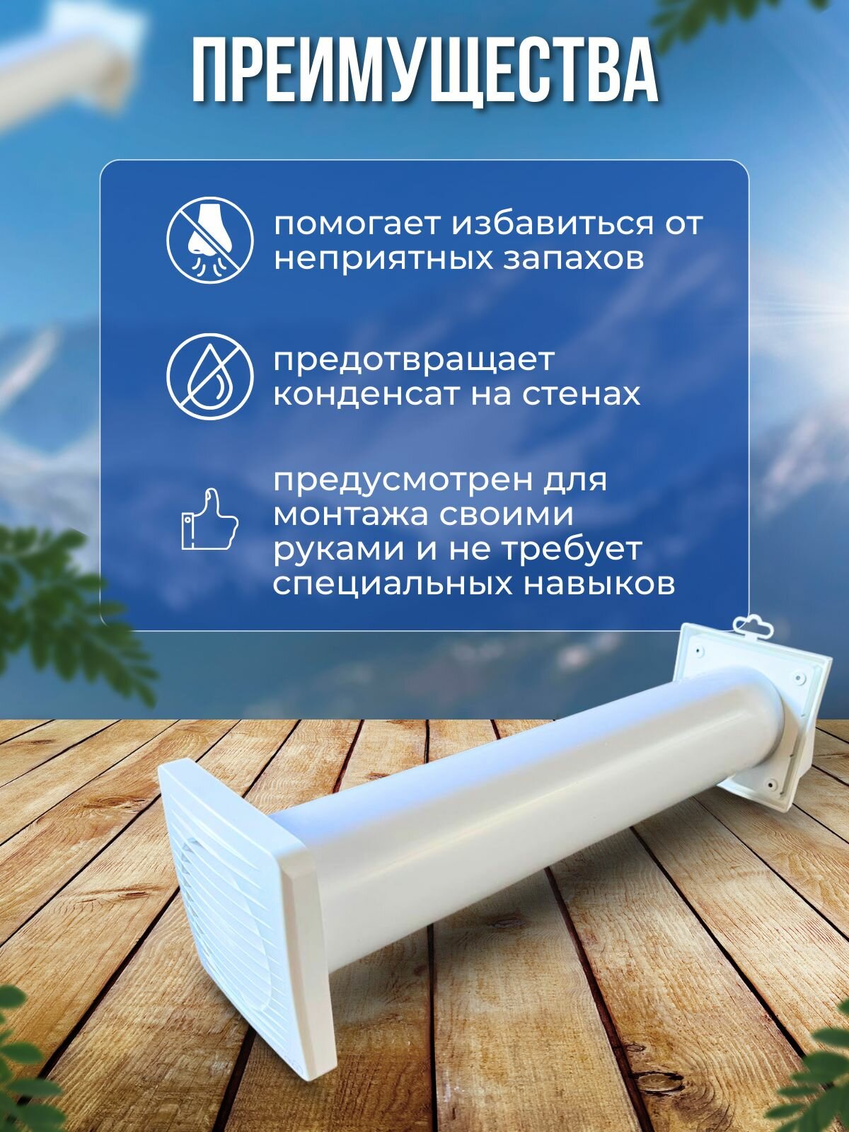 Отзывы на Вентиляция вытяжная диаметром 100 мм через стену до 0,5 метра (комплект) Вентан-100/0,5/БЕЛ