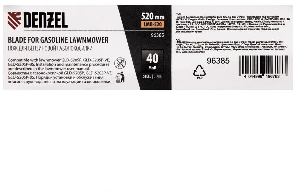 Нож для бензиновой газонокосилки LMB-520, 52 см Denzel информация:
