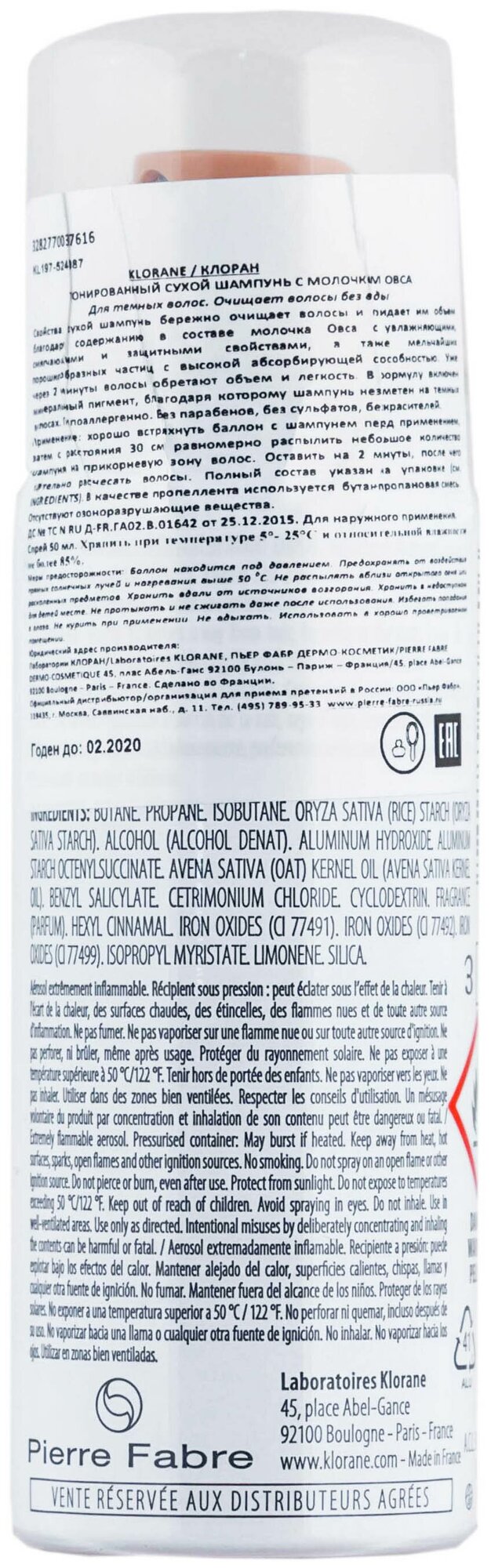 Klorane Шампунь сухой тонированный с экстрактом Овса спрей 50 мл 1 шт информация: