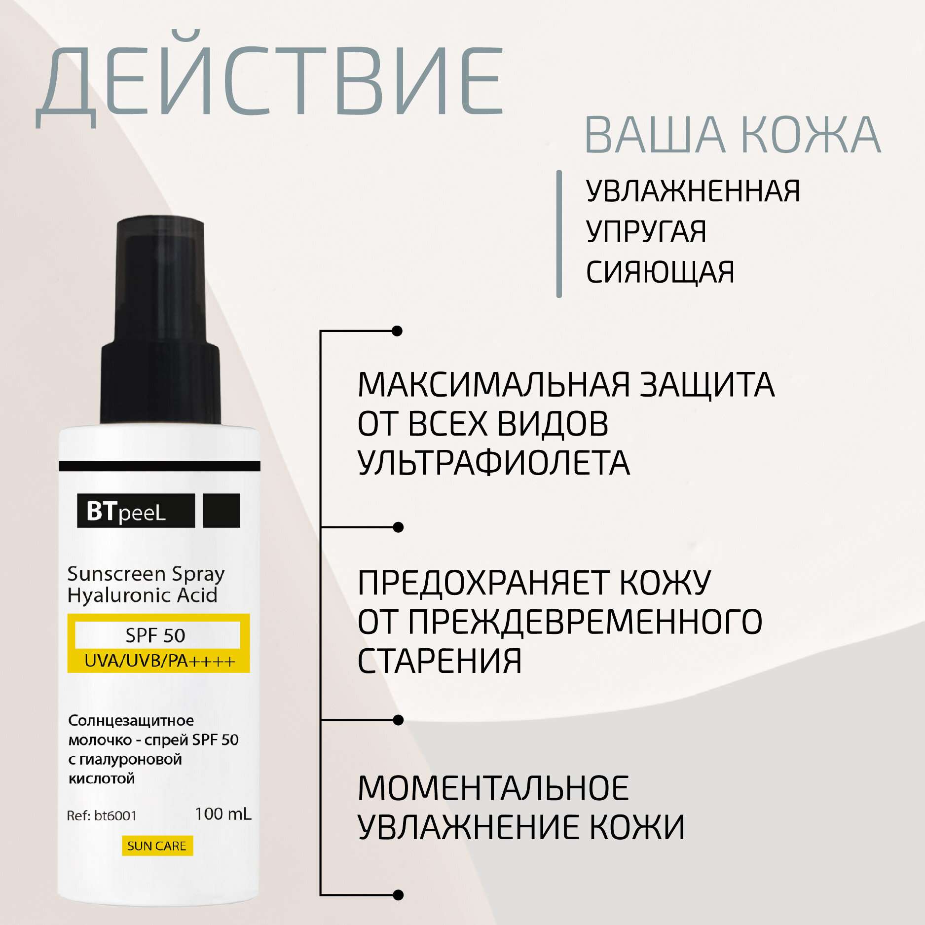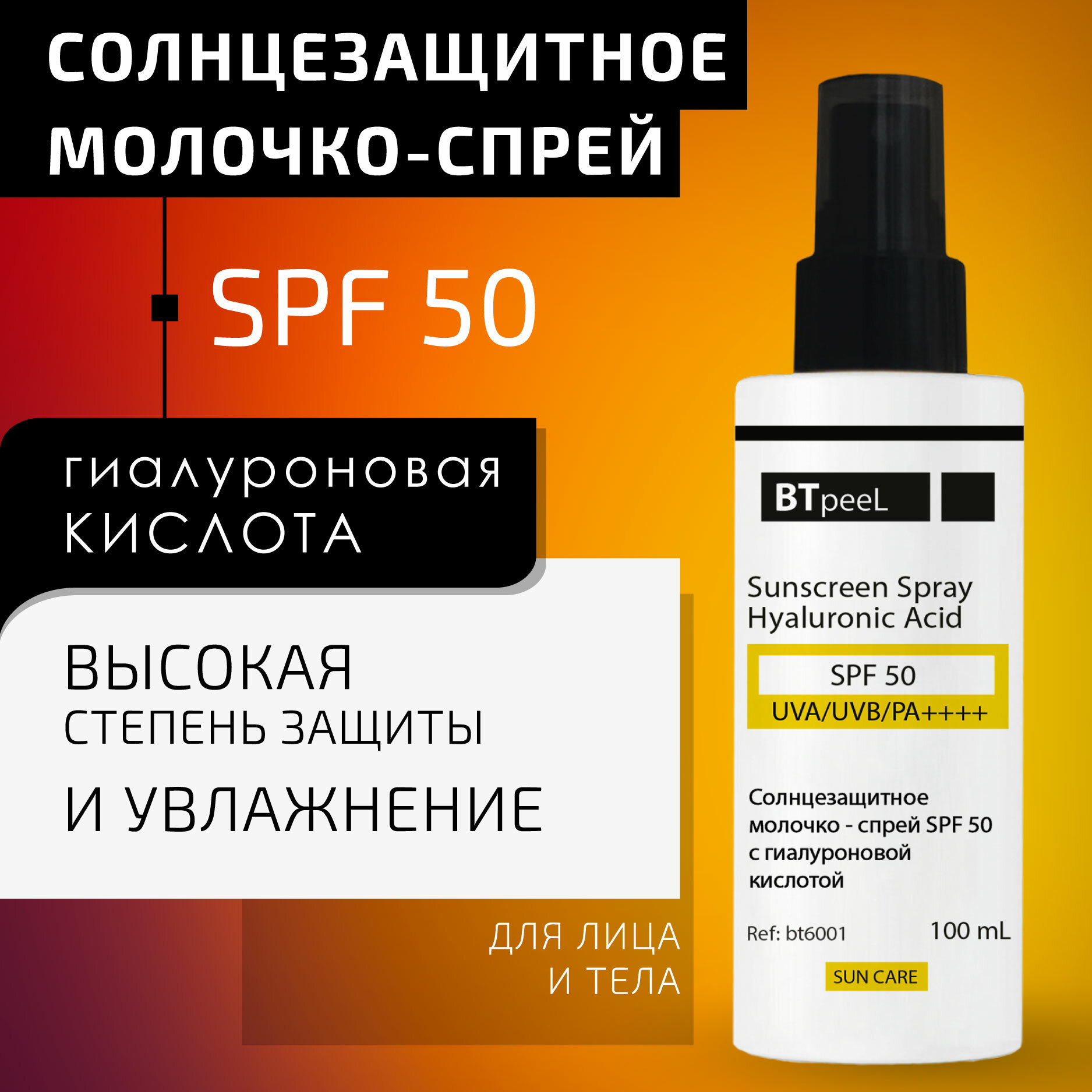 10 цен на Солнцезащитное молочко-cпрей SPF-50 UVA/UVB/PA++++ с гиалуроновой кислотой BTpeel, 100 мл