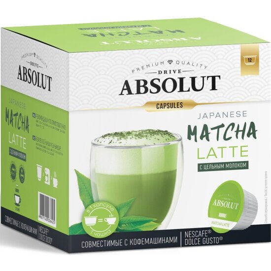 Напиток в капсулах Absolut Drive "матча латте" 12 капсул (для кофемашин Dolce Gusto) информация: