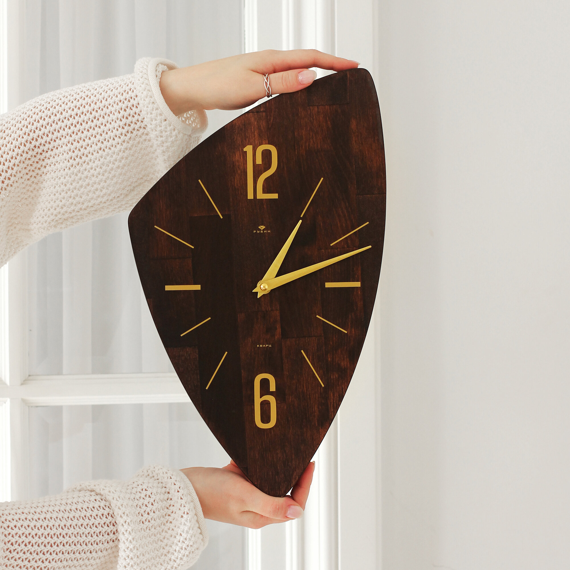 Деревянные настенные часы Ностальгия 42x22 см, бесшумные интерьерные часы из дерева, Коричневый информация: