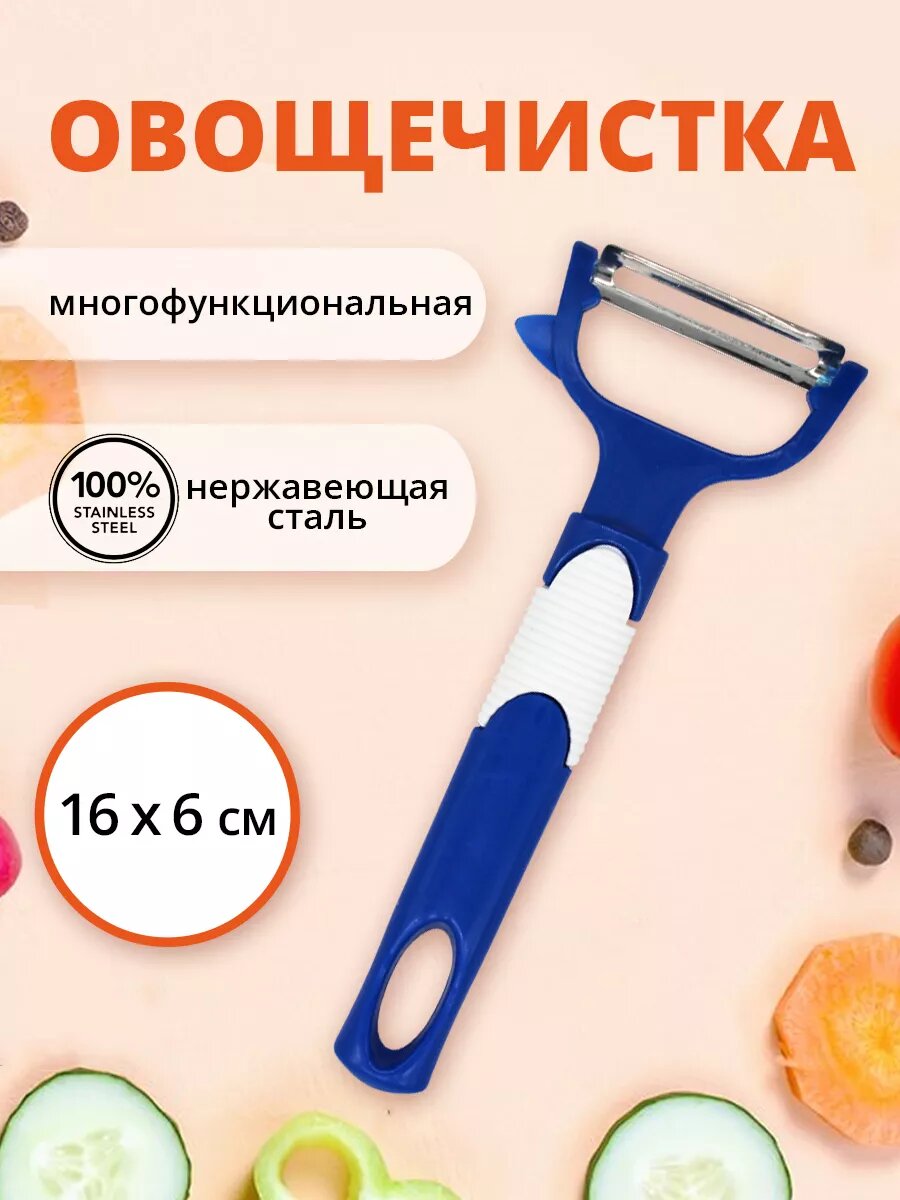10 цен на Овощечистка 16х6,5см пластик, цвет синий
