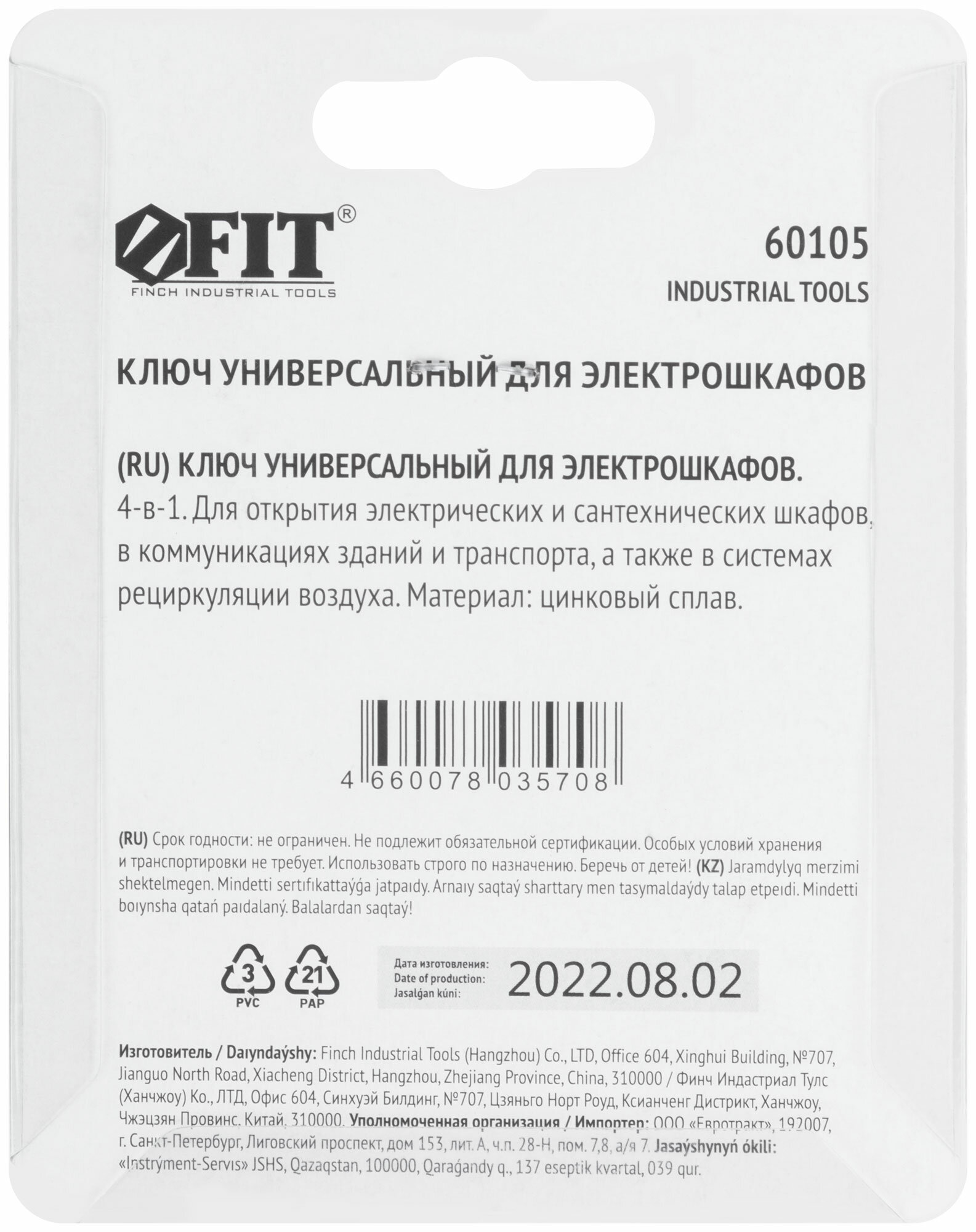 Ключ универсальный FIT для электрошкафов 4-в-1 60105 информация: