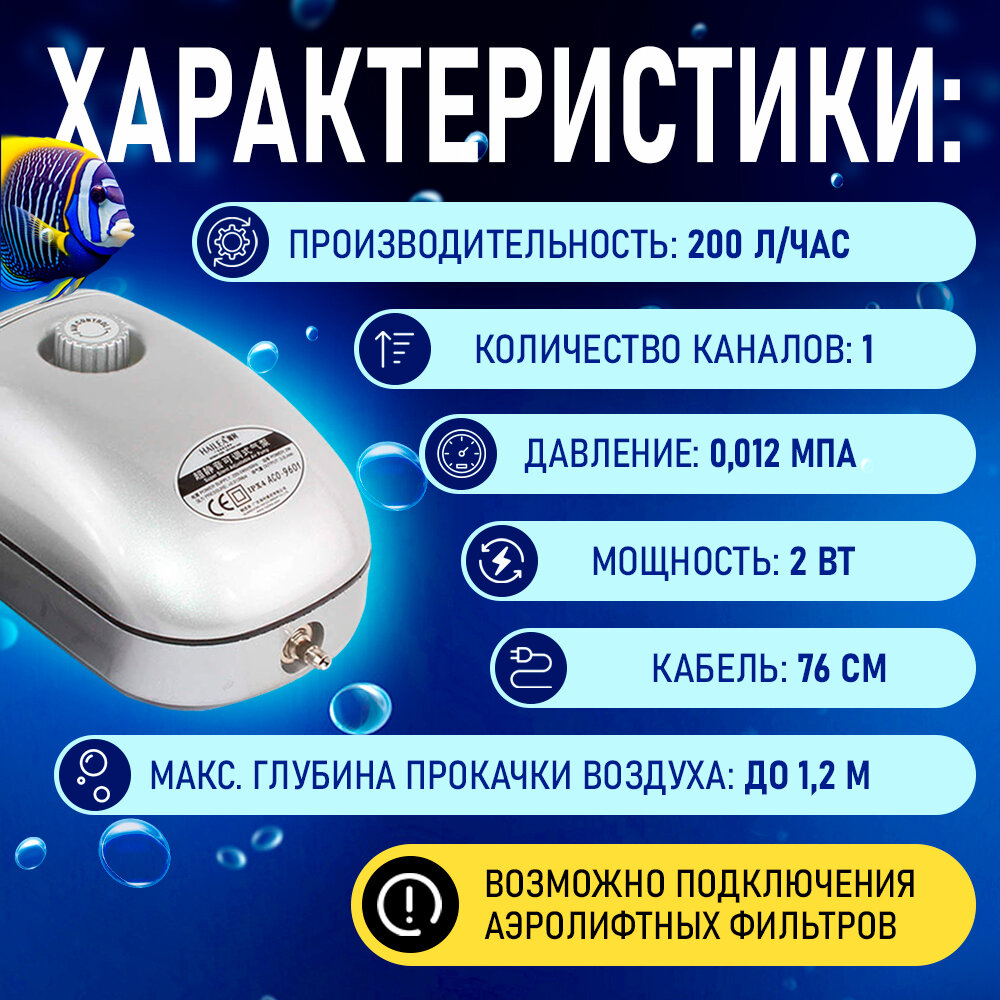 Набор с компрессором HAILEA 9601 для аквариума, бесшумный, с регулятором потока воздуха. Для коптилен и пр. информация: