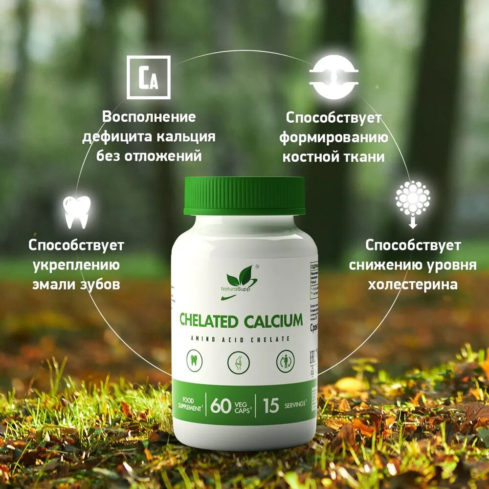 Кальций 200 мг Хелат Бисглицинат / Для костей и суставов / 60 капс NaturalSupp информация: