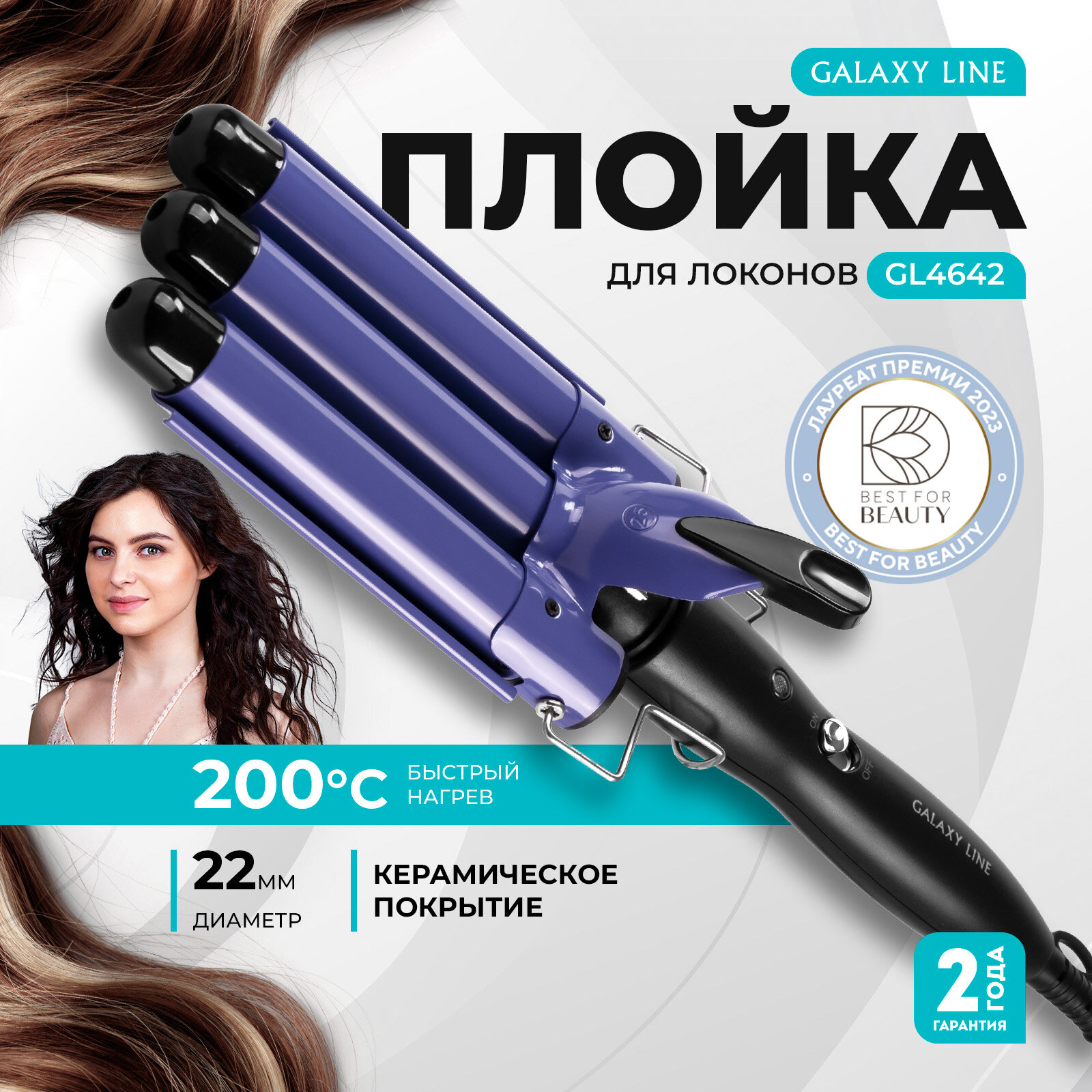 Стайлер Galaxy Line GL4666 - тройной стайлер для укладки волос