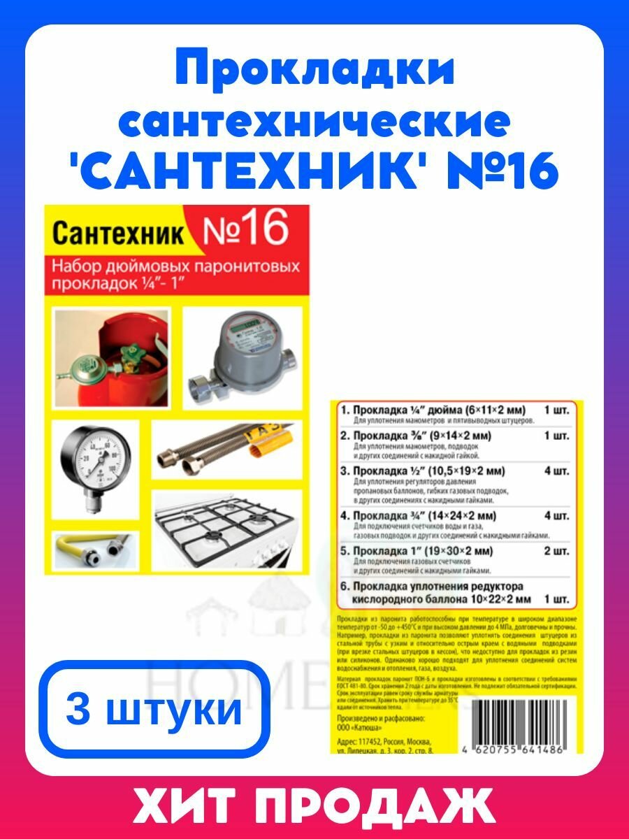 Прокладки сантехнические набор 'сантехник' №16 (паронит) информация: