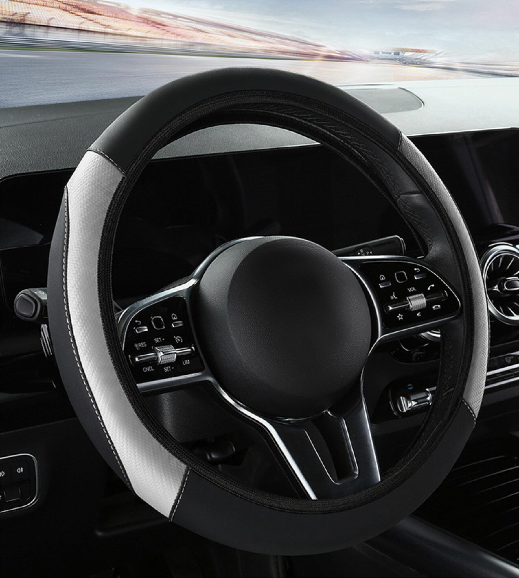 Оплетка на руль универсальная из экокожи «CARBON» М 37-39 см (чёрная, строчка чёрная) belais #21608