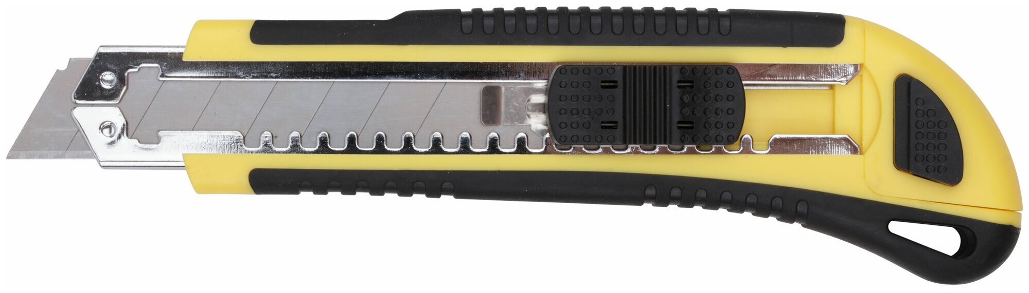 | Особенности | блокировка лезвия / отламывающееся лезвие / прорезиненная рукоятка / сменное лезвие |