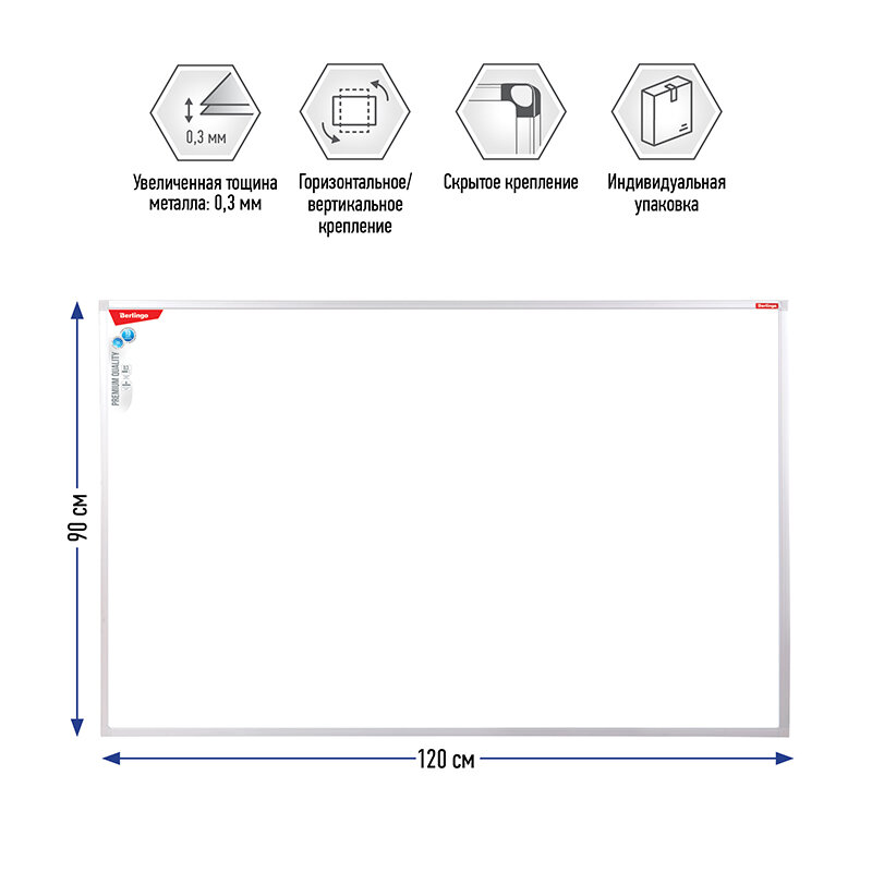 Доска магнитно-маркерная Berlingo «Premium», 90×120см, алюминиевая рамка, полочка информация: