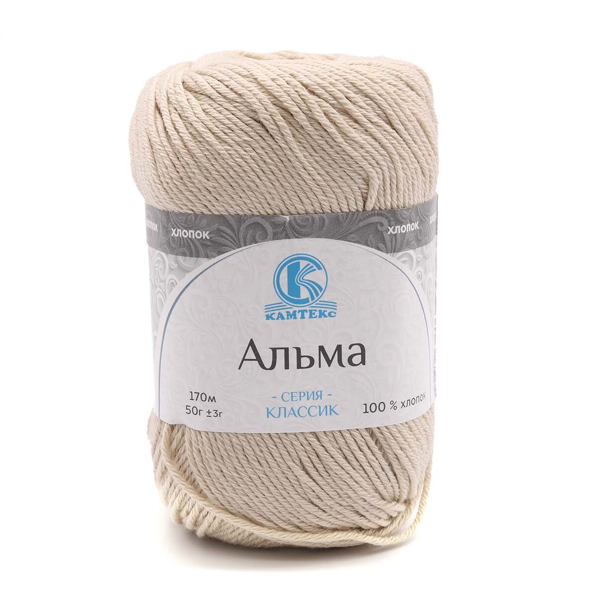 Пряжа Альма (Камтекс), экрю - 080, 100% хлопок, 5 мотков, 50 г, 170 м.