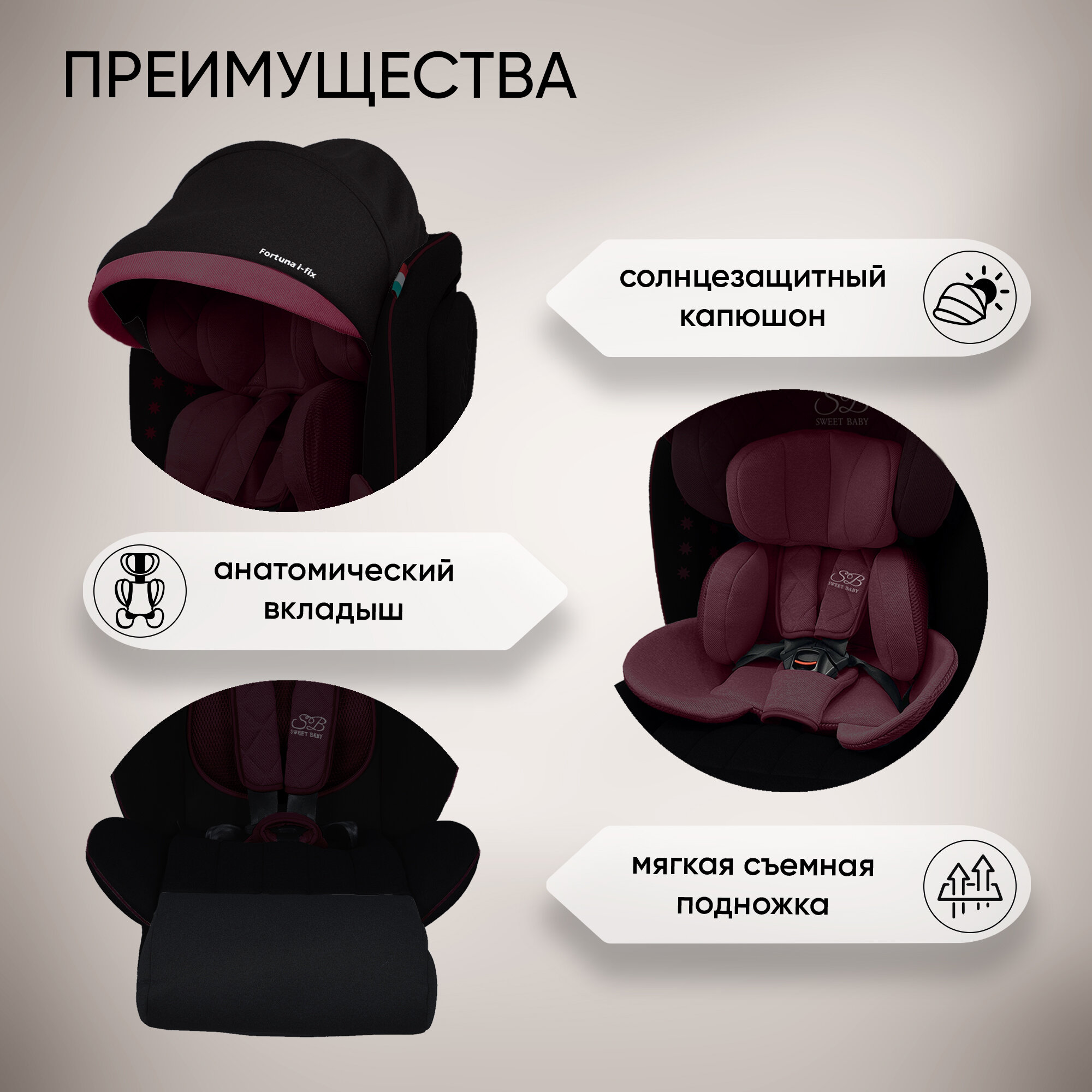 10 цен на Автокресло группа 0123 (0-36) Sweet Baby Fortuna 360 SPS Isofix Wine/Black