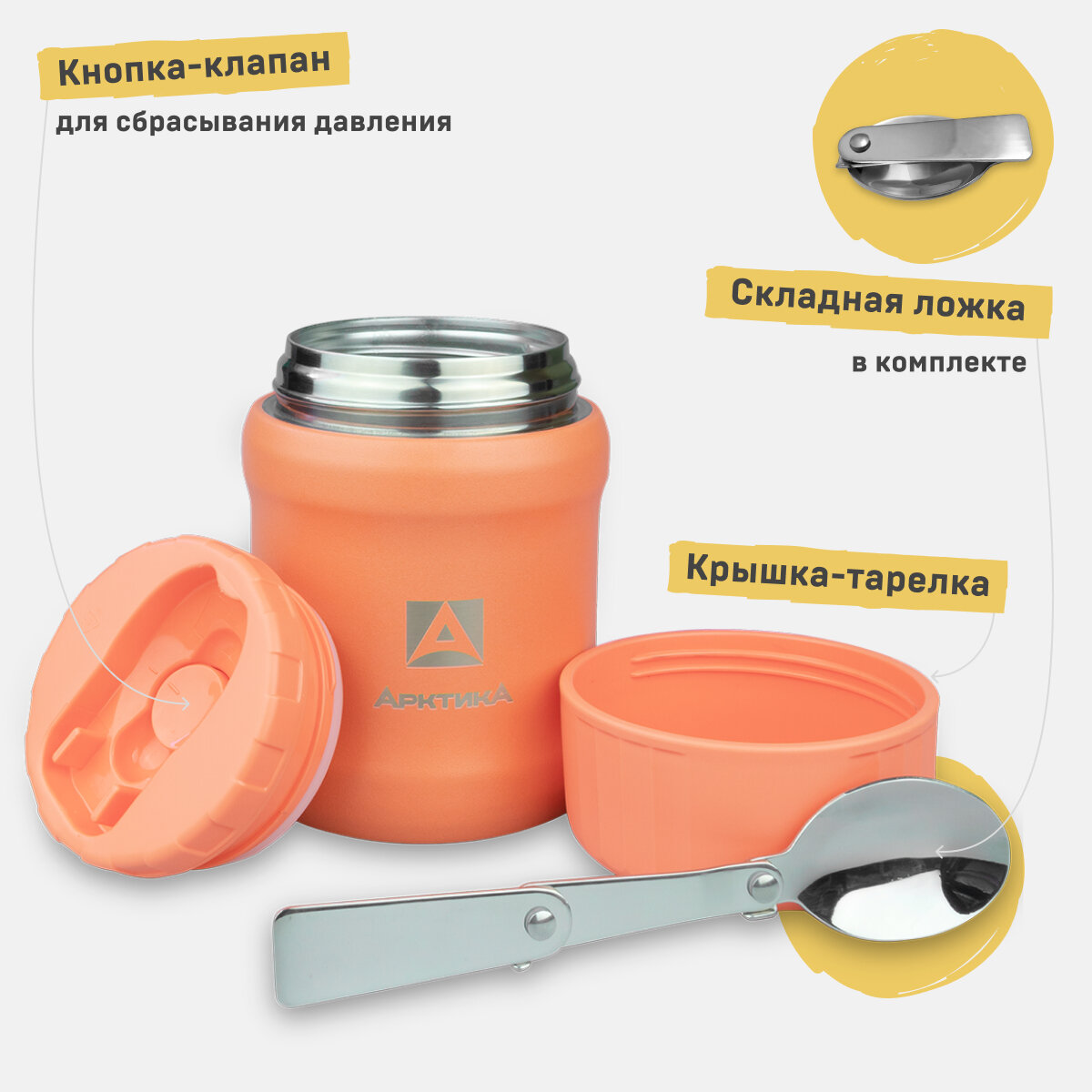 Термос для еды вакуумный Арктика, 0.5 л, 311-500, жёлтый 3 310 ₽