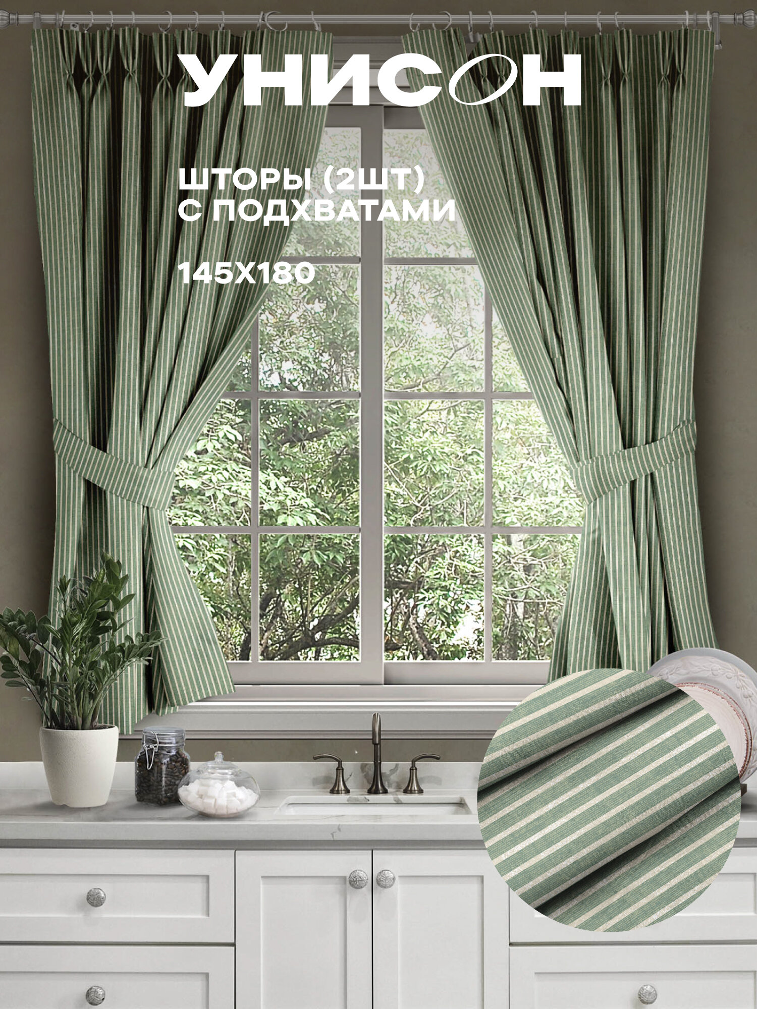 Комплект штор с подхватом рогожка 145х180 (2 шт.) "Унисон" рис 33159-4 Fern