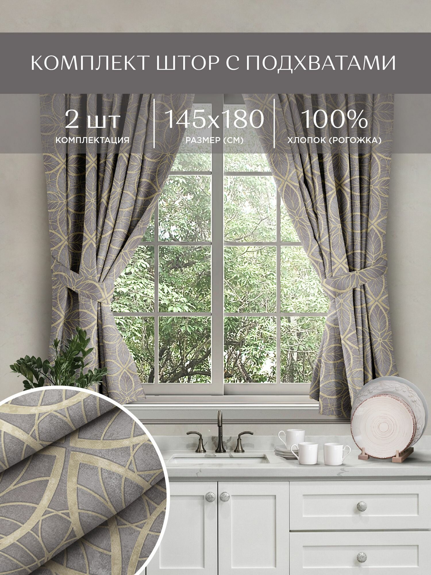 Комплект штор с подхватом рогожка 145х180 (2 шт.) "Унисон" рис 33090-3 Botanica 1 578 ₽