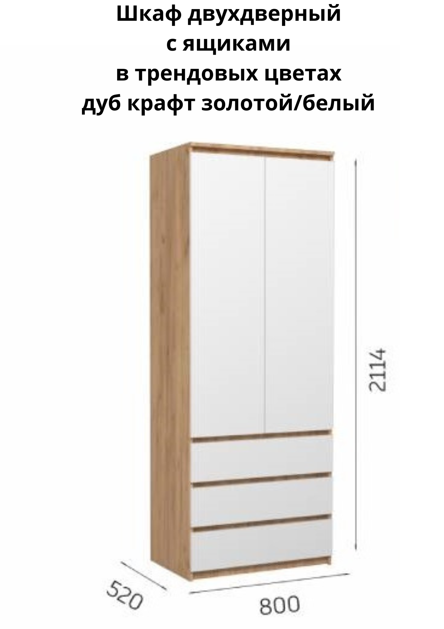 Шкаф для одежды Good Home "Дуб Крафт Золотой/Белый" с ящиками и перегородкой информация: