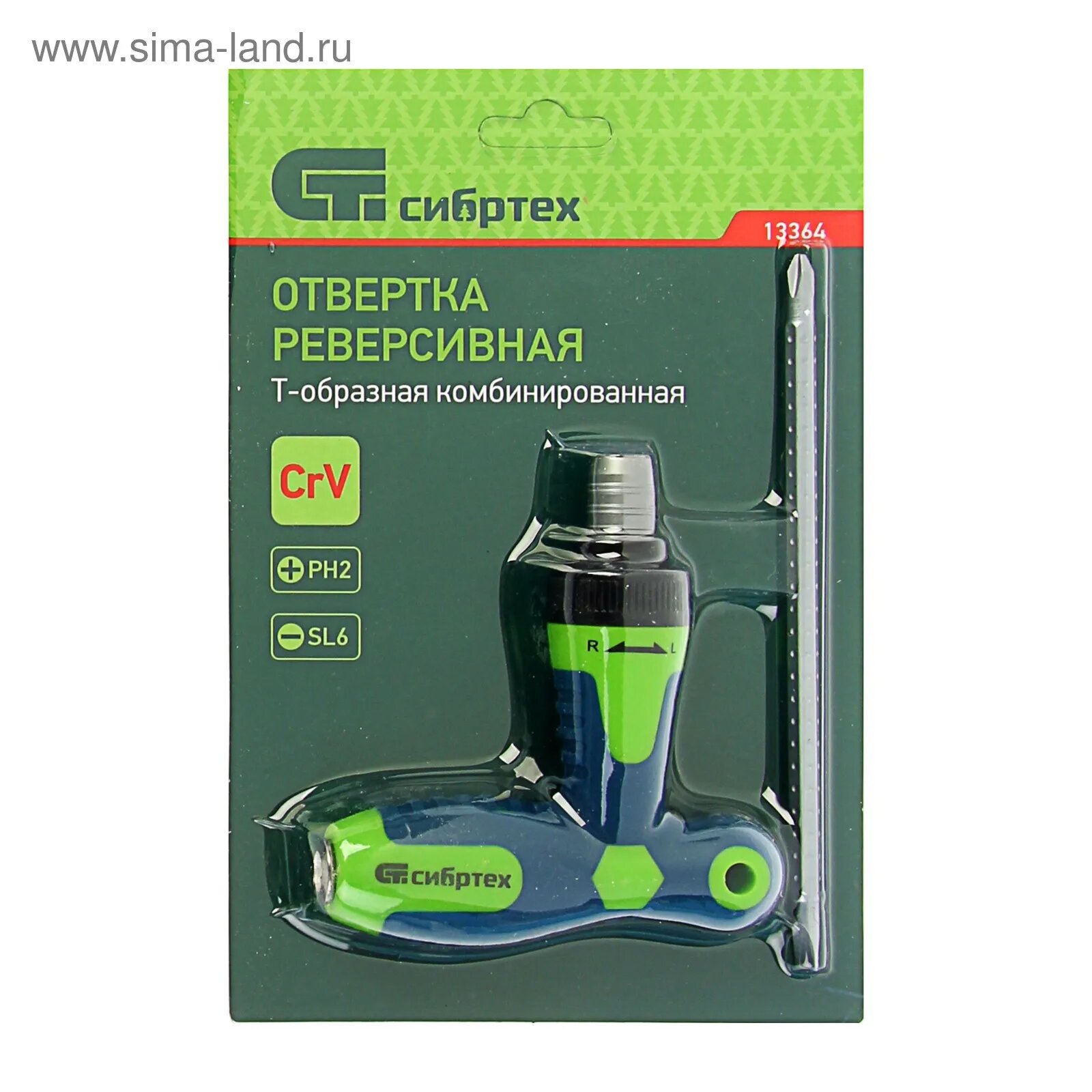 10 цен на Отвертка реверсивная Т-образная комбинированная PH2/SL6, CrV Сибртех