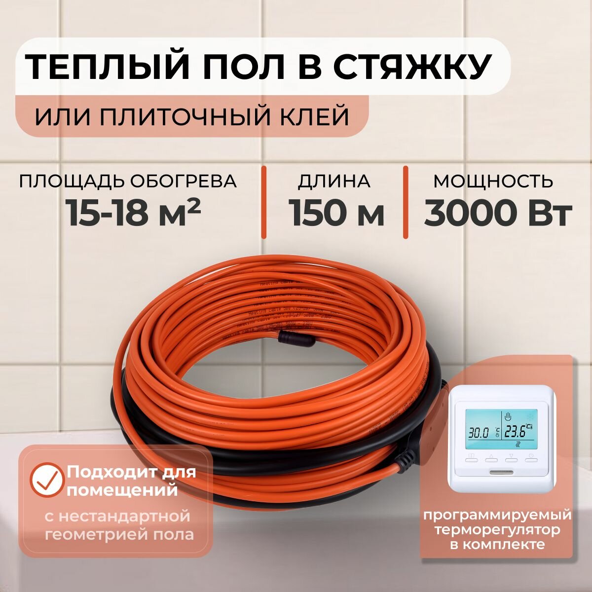 10 цен на Теплый пол В стяжку или Плиточный клей 3000Вт (15-18 м.кв.) с Электронным терморегулятором